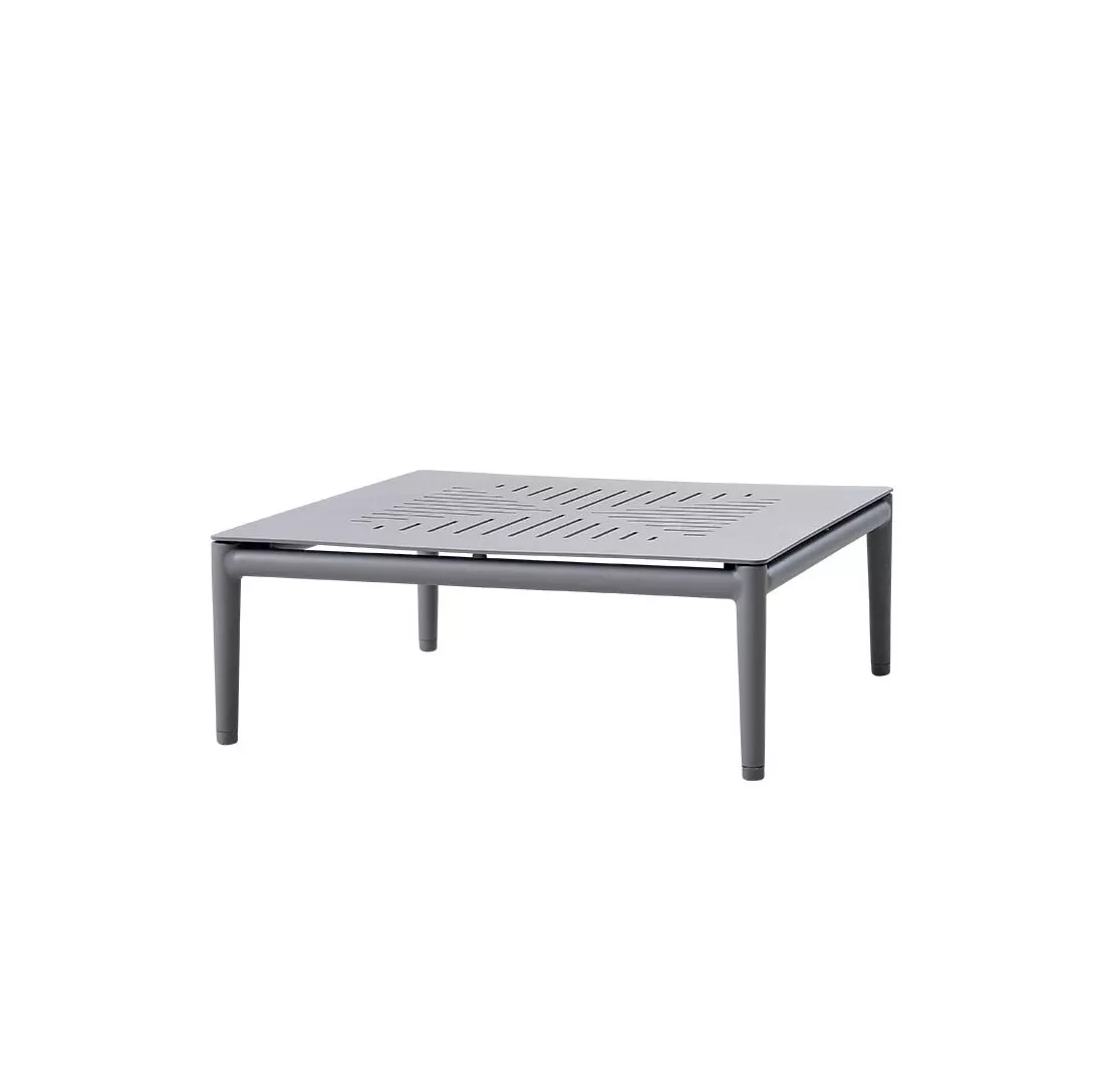 Der Conic Couchtisch verbindet die einzelnen Sofamodule der Conic Loungegruppe auf elegante und stilvolle Weise. Der Couchtisch lässt sich einfach zwischen die Module setzen oder davor als praktischer Couchtisch nutzen. Der Couchtisch ist komplett aus pulverlackiertem Aluminium gefertigt und somit pflegeleicht und witterungsbeständig. Die gesamte Conic Loungegruppe kann im Winter draußen bleiben, wir empfehlen jedoch, ein Cover zu benutzen, um die Frühlingsreinigung zu erleichtern. Die Conic Loungegruppe wurde vom bekannten dänischen Designduo Johannes Foersom und Peter Hiort-Lorenzen MDD entworfen.