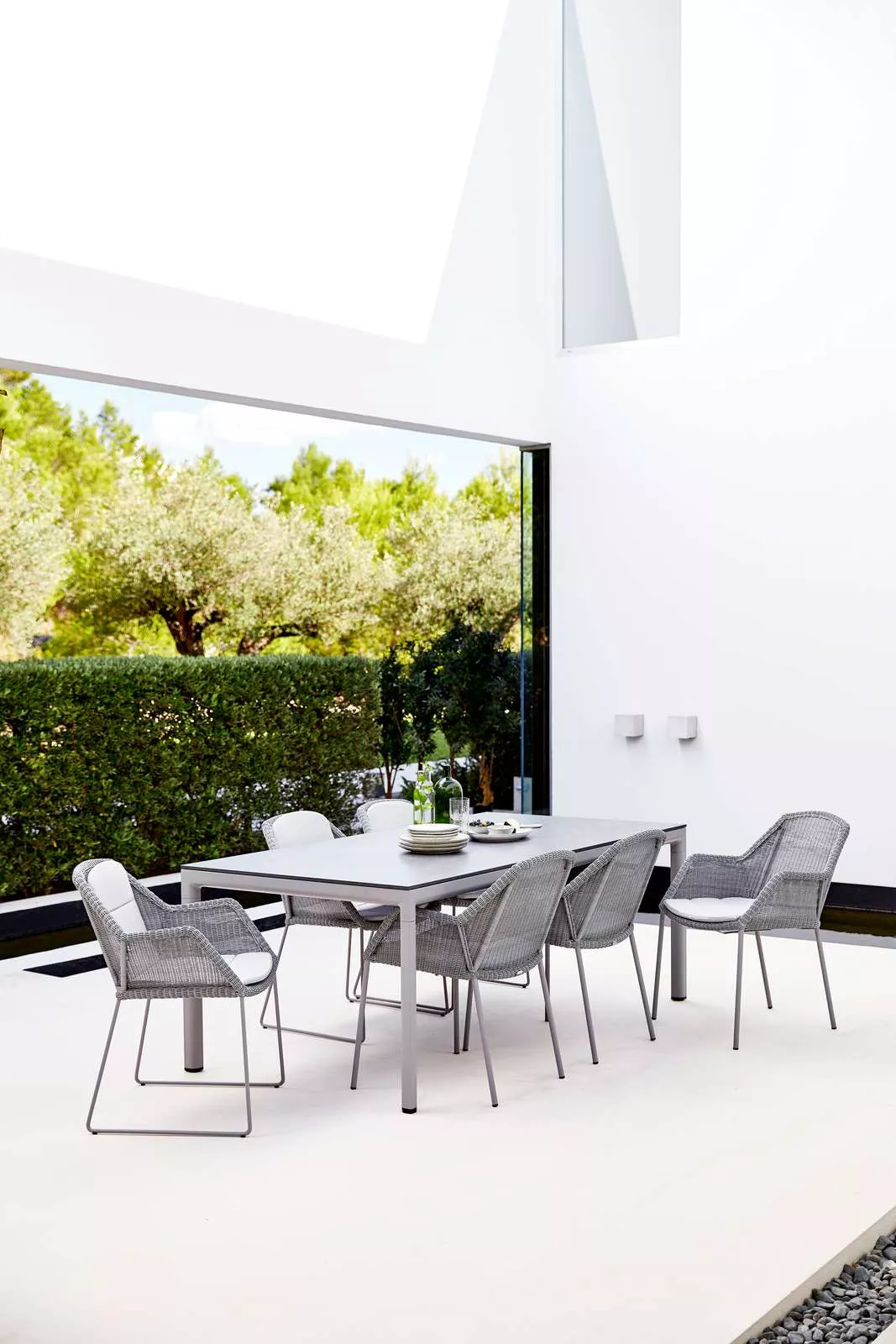 Cane-line Drop Gartentisch mit AluminiumplatteCane-line Katalog Die Drop-Tische überzeugen durch eine robuste Keramikplatte in Kombination mit einem weichen Aluminiumrahmen. Dies verleiht unserem Tisch-Sortiment einen völlig neuen Stil. Die Keramik-Tischplatte besticht durch eine widerstandsfähige und raue Oberfläche, inspiriert von einem nordischen Lebensstil. Unser Ziel war es, einen eleganten, aber widerstandsfähigen Tisch zu entwerfen. Die Drop-Tische sind sowohl als Esstische als auch als Stehtische erhältlich. Beide Varianten sind mit austauschbaren Tischplatten ausgestattet. Der Esstisch ist in verschiedenen Größen erhältlich, einige sogar mit zusätzlichen Platten. Damit bieten wir Ihnen die Möglichkeit, den Tisch Ihren Bedürfnissen und Ihrem Raum anzupassen. So können Sie auch im Freien gemütlich essen. Die Cane-line Drop Kollektion besteht aus einer Reihe von Möbeln, die Ihr Leben so angenehm wie möglich gestalten – ob Sie einen Moment der Entspannung suchen oder die Zeit im Freien mit Familie und Freunden genießen möchten. Produkteingenschaften • Aluminiumgestell pulverbeschichtet • Tischplatte: Aluminium-/Keramikplatte • Materialien wetter- und lichtbeständig • Hohe Hitze- und Kältebeständigkeit • Sowohl im Innen- als auch im Außenbereich einsetzbar • Wartungsarm und pflegeleicht Maße (Gestell / Tischplatte Ø × H) 57 / 60 × 73 cm