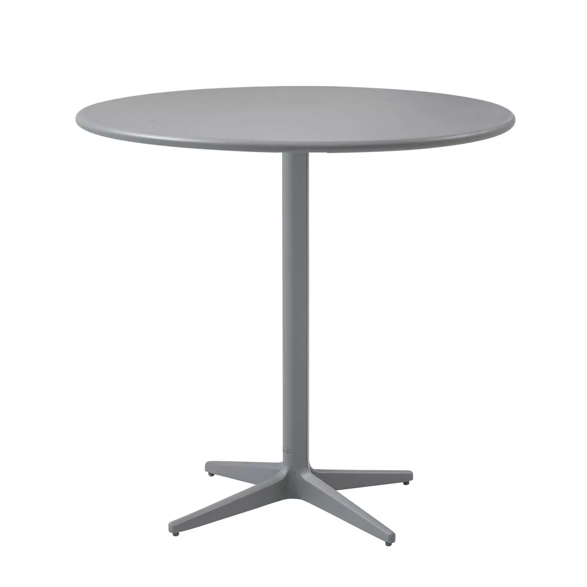 Cane-line Drop Gartentisch mit HPL-Platte | Bistrotisch Ø 70 cm Abb. ähnlich Cane-line Katalog Die Drop-Tische überzeugen durch eine robuste Keramikplatte in Kombination mit einem weichen Aluminiumrahmen. Dies verleiht unserem Tisch-Sortiment einen völlig neuen Stil. Die Keramik-Tischplatte besticht durch eine widerstandsfähige und raue Oberfläche, inspiriert von einem nordischen Lebensstil. Unser Ziel war es, einen eleganten, aber widerstandsfähigen Tisch zu entwerfen. Die Drop-Tische sind sowohl als Esstische als auch als Stehtische erhältlich. Beide Varianten sind mit austauschbaren Tischplatten ausgestattet. Der Esstisch ist in verschiedenen Größen erhältlich, einige sogar mit zusätzlichen Platten. Damit bieten wir Ihnen die Möglichkeit, den Tisch Ihren Bedürfnissen und Ihrem Raum anzupassen. So können Sie auch im Freien gemütlich essen. Produkteingenschaften • Aluminiumgestell pulverbeschichtet • Tischplatte: HPL Dark Grey • Materialien wetter- und lichtbeständig • Hohe Hitze- und Kältebeständigkeit • Sowohl im Innen- als auch im Außenbereich einsetzbar • Wartungsarm und pflegeleicht Maße (Gestell / Tischplatte Ø × H) 57 / 70 × 74,2 cm