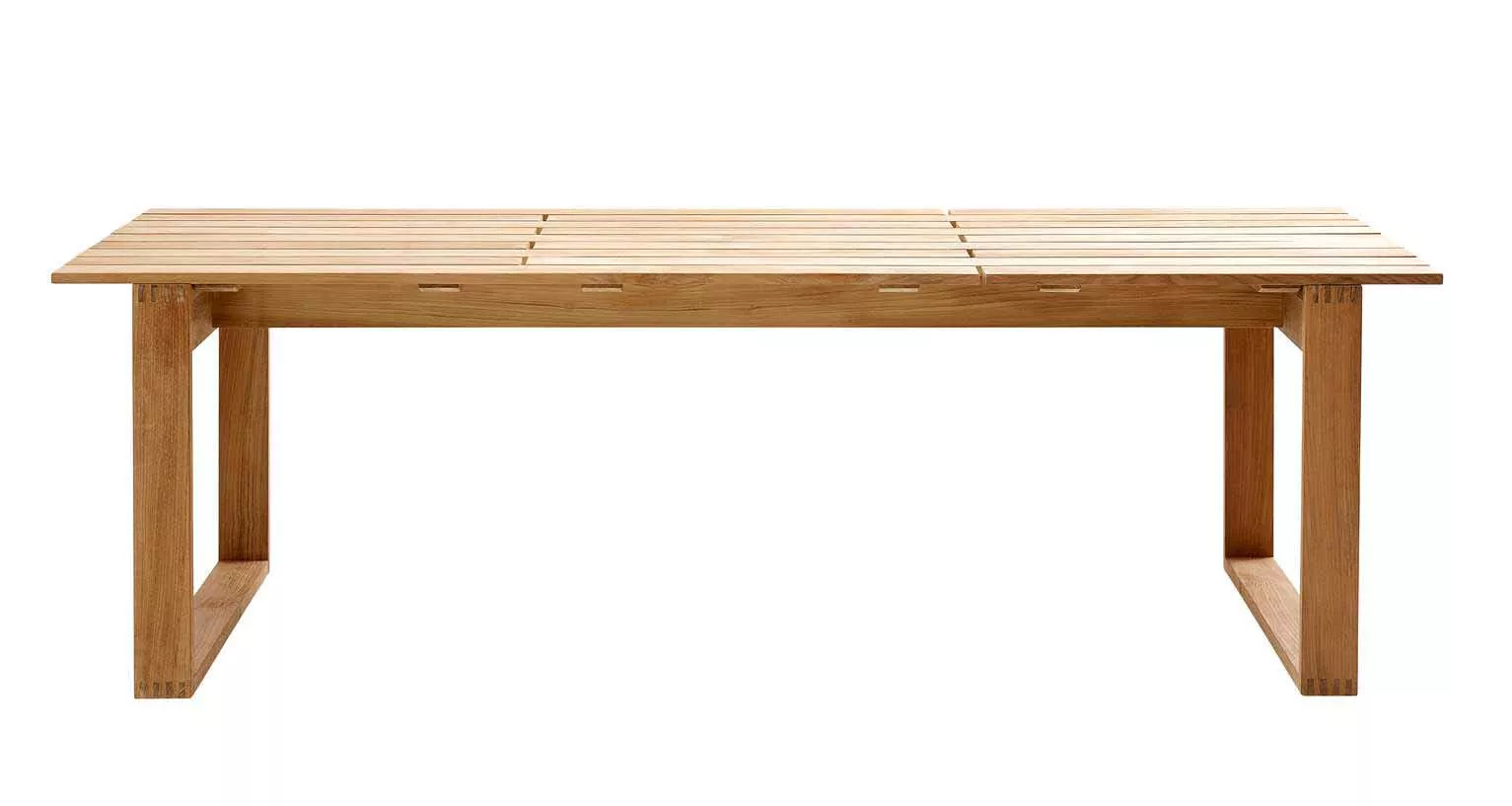 Cane-line Endless Gartentisch | Esstisch 332 cm Cane-line Katalog Die Serie „Endless“ umfasst zertifizierte Teakholztische, die von Foersom & Hiort-Lorenzen MDD entworfen wurden. Der Tisch ist aus einer Anordnung von Teakbrettern gefertigt, die den charakteristischen „Endless“-Look schaffen. Das warm wirkende Teakholz verleiht dem Tisch eine zeitlose Eleganz. Das robuste Teakholz garantiert eine lange Lebensdauer und verleiht dem Tisch einen klassischen Charme mit geschmeidigen Oberflächen und ansprechenden Details. Der Endless Tisch ist in rechteckiger sowie runder Form und verschiedenen Größen verfügbar und erfüllt unterschiedlichste Anforderungen. Dank der Verwendung von zertifiziertem Teakholz überzeugt der Tisch durch natürliche Schönheit und eine lange Lebensdauer. Teakholz ist aufgrund seiner Ölhaltigkeit ideal für den Einsatz im Außenbereich geeignet und entwickelt im Laufe der Zeit eine natürliche silbergraue Patina. Eine regelmäßige Behandlung mit Teaköl bewahrt den warmen, natürlichen Farbton. Cane-line Teak ist gemäß dem SVLK-Zertifizierungssystem für nachhaltige Forstwirtschaft genehmigt. Produkteingenschaften • Gestell: Teakholz • Tischplatte: Teakholz • Materialien wetter- und lichtbeständig • Hohe Hitze- und Kältebeständigkeit • Sowohl im Innen- als auch im Außenbereich einsetzbar • Wartungsarm und pflegeleicht Maße (B × T × H) 332 × 100 × 74 cm Gewicht (Kg) 75,5