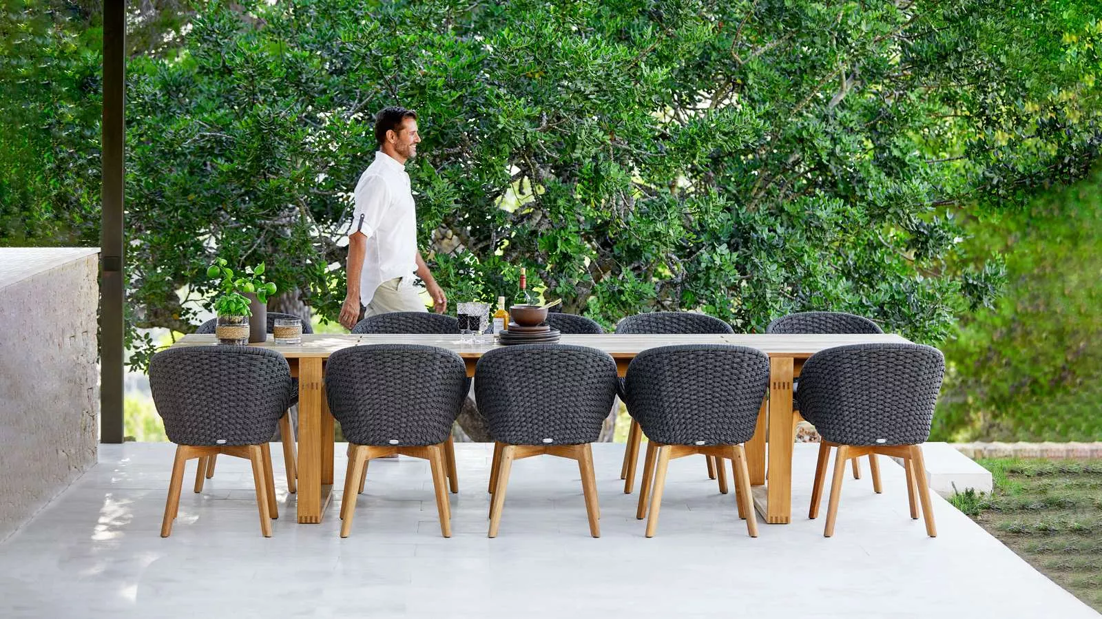 Cane-line Endless Gartentisch | Esstisch 332 cm Cane-line Katalog Die Serie „Endless“ umfasst zertifizierte Teakholztische, die von Foersom & Hiort-Lorenzen MDD entworfen wurden. Der Tisch ist aus einer Anordnung von Teakbrettern gefertigt, die den charakteristischen „Endless“-Look schaffen. Das warm wirkende Teakholz verleiht dem Tisch eine zeitlose Eleganz. Das robuste Teakholz garantiert eine lange Lebensdauer und verleiht dem Tisch einen klassischen Charme mit geschmeidigen Oberflächen und ansprechenden Details. Der Endless Tisch ist in rechteckiger sowie runder Form und verschiedenen Größen verfügbar und erfüllt unterschiedlichste Anforderungen. Dank der Verwendung von zertifiziertem Teakholz überzeugt der Tisch durch natürliche Schönheit und eine lange Lebensdauer. Teakholz ist aufgrund seiner Ölhaltigkeit ideal für den Einsatz im Außenbereich geeignet und entwickelt im Laufe der Zeit eine natürliche silbergraue Patina. Eine regelmäßige Behandlung mit Teaköl bewahrt den warmen, natürlichen Farbton. Cane-line Teak ist gemäß dem SVLK-Zertifizierungssystem für nachhaltige Forstwirtschaft genehmigt. Produkteingenschaften • Gestell: Teakholz • Tischplatte: Teakholz • Materialien wetter- und lichtbeständig • Hohe Hitze- und Kältebeständigkeit • Sowohl im Innen- als auch im Außenbereich einsetzbar • Wartungsarm und pflegeleicht Maße (B × T × H) 332 × 100 × 74 cm Gewicht (Kg) 75,5
