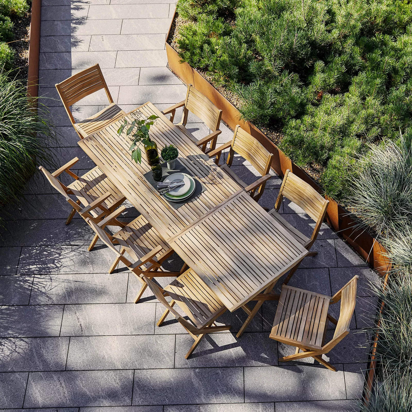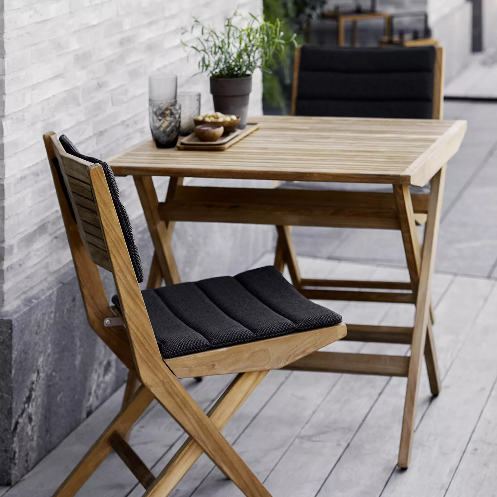 Der Klappstuhl Flip ist eine moderne Interpretation des klassischen Klappstuhls. Er verbindet ein zeitgemäßes Design mit höchster Qualität. Das Design wurde vom dänischen Designerpaar Strand+Hvass entwickelt. Das warme Teakholz verleiht diesen schlichten und eleganten Klappstühlen einen ansprechenden Farbton. Aufgrund ihrer Klappfunktion eignen sich die Flip-Stühle besonders gut für Außenbereiche mit begrenztem Platz und Stauraum. Optional sind Polster erhältlich, die den Komfort zusätzlich erhöhen.
