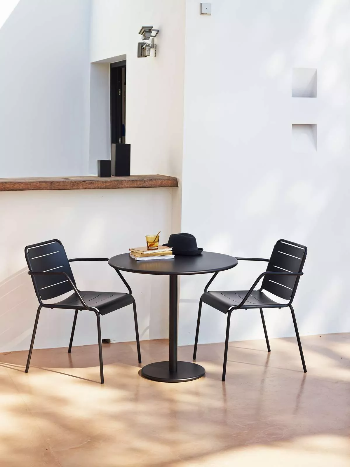 Cane-line Go Gartentisch | Bistrotisch mit Aluminiumplatte Ø 80 cm Cane-line Katalog Der Tisch Go ermöglicht Ihnen die flexible Gestaltung Ihrer Arbeitsumgebung. Dank seines schlanken und eleganten Designs eignet sich der Tisch Go ideal als Bistrotisch-Lösung. Die bewusst minimalistische Gestaltung macht Go zu einer perfekten Ergänzung für jeden Stuhl. Der Tisch ermöglicht vielseitige Kombinationen von Formen und Farben. Der Tisch Go ist aus witterungsbeständigem, pulverbeschichtetem Aluminium und einem Mittelteil aus Gusseisen gefertigt und bietet somit maximale Stabilität und Gewicht, um allen Wetterbedingungen standzuhalten. Entworfen vom Cane-line Design, ist Go in Anthrazitgrau und Weiß erhältlich. Das Untergestell kann mit Tischplatten in verschiedenen Größen und Ausführungen kombiniert werden. Produkteingenschaften • Aluminiumgestell pulverbeschichtet • Tischplatte: Aluminium • Materialien wetter- und lichtbeständig • Hohe Hitze- und Kältebeständigkeit • Sowohl im Innen- als auch im Außenbereich einsetzbar • Wartungsarm und pflegeleicht Maße (Gestell / Tischplatte Ø × H) 40 / 80 × 73 cm