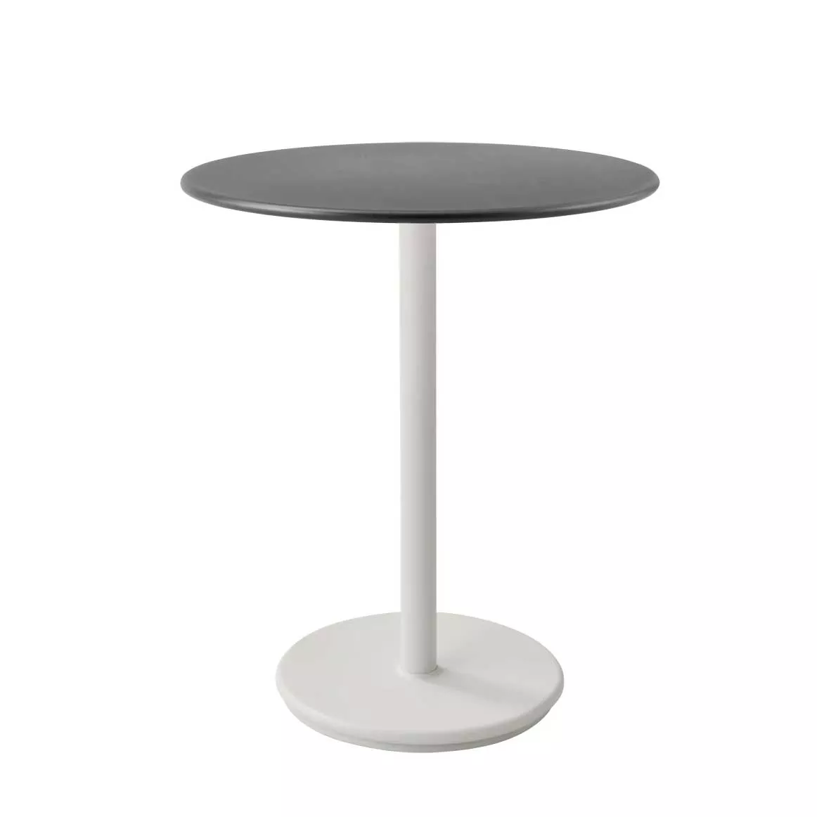 Cane-line Go Gartentisch | Bistrotisch mit Aluminiumplatte Ø 80 cm Cane-line Katalog Der Tisch Go ermöglicht Ihnen die flexible Gestaltung Ihrer Arbeitsumgebung. Dank seines schlanken und eleganten Designs eignet sich der Tisch Go ideal als Bistrotisch-Lösung. Die bewusst minimalistische Gestaltung macht Go zu einer perfekten Ergänzung für jeden Stuhl. Der Tisch ermöglicht vielseitige Kombinationen von Formen und Farben. Der Tisch Go ist aus witterungsbeständigem, pulverbeschichtetem Aluminium und einem Mittelteil aus Gusseisen gefertigt und bietet somit maximale Stabilität und Gewicht, um allen Wetterbedingungen standzuhalten. Entworfen vom Cane-line Design, ist Go in Anthrazitgrau und Weiß erhältlich. Das Untergestell kann mit Tischplatten in verschiedenen Größen und Ausführungen kombiniert werden. Produkteingenschaften • Aluminiumgestell pulverbeschichtet • Tischplatte: Aluminium • Materialien wetter- und lichtbeständig • Hohe Hitze- und Kältebeständigkeit • Sowohl im Innen- als auch im Außenbereich einsetzbar • Wartungsarm und pflegeleicht Maße (Gestell / Tischplatte Ø × H) 40 / 80 × 73 cm