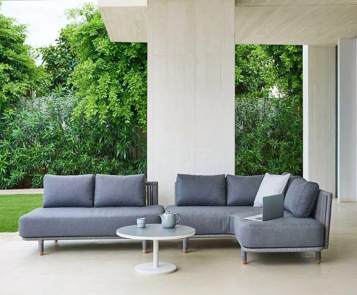 Cane-line Go Loungetisch | Couchtisch mit HPL Tischplatte Ø 70 cm Cane-line Katalog Der Tisch Go ermöglicht Ihnen die flexible Gestaltung Ihrer Arbeitsumgebung. Dank seines schlanken und eleganten Designs eignet sich der Tisch Go ideal als Couchtisch-Lösung. Die bewusst minimalistische Gestaltung macht Go zu einer perfekten Ergänzung für jeden Stuhl. Der Tisch ermöglicht vielseitige Kombinationen von Formen und Farben. Der Tisch Go ist aus witterungsbeständigem, pulverbeschichtetem Aluminium und einem Mittelteil aus Gusseisen gefertigt und bietet somit maximale Stabilität und Gewicht, um allen Wetterbedingungen standzuhalten. Entworfen vom Cane-line Design, ist Go in Grau erhältlich. Das Untergestell kann mit Tischplatten in verschiedenen Größen und Ausführungen kombiniert werden. Produkteingenschaften • Aluminiumgestell pulverbeschichtet • Tischplatte: HPL • Materialien wetter- und lichtbeständig • Hohe Hitze- und Kältebeständigkei • Sowohl im Innen- als auch im Außenbereich einsetzbar • Wartungsarm und pflegeleicht Maße (Ø Gestell / Tischplatte × H) 40 / 70 × 39 cm