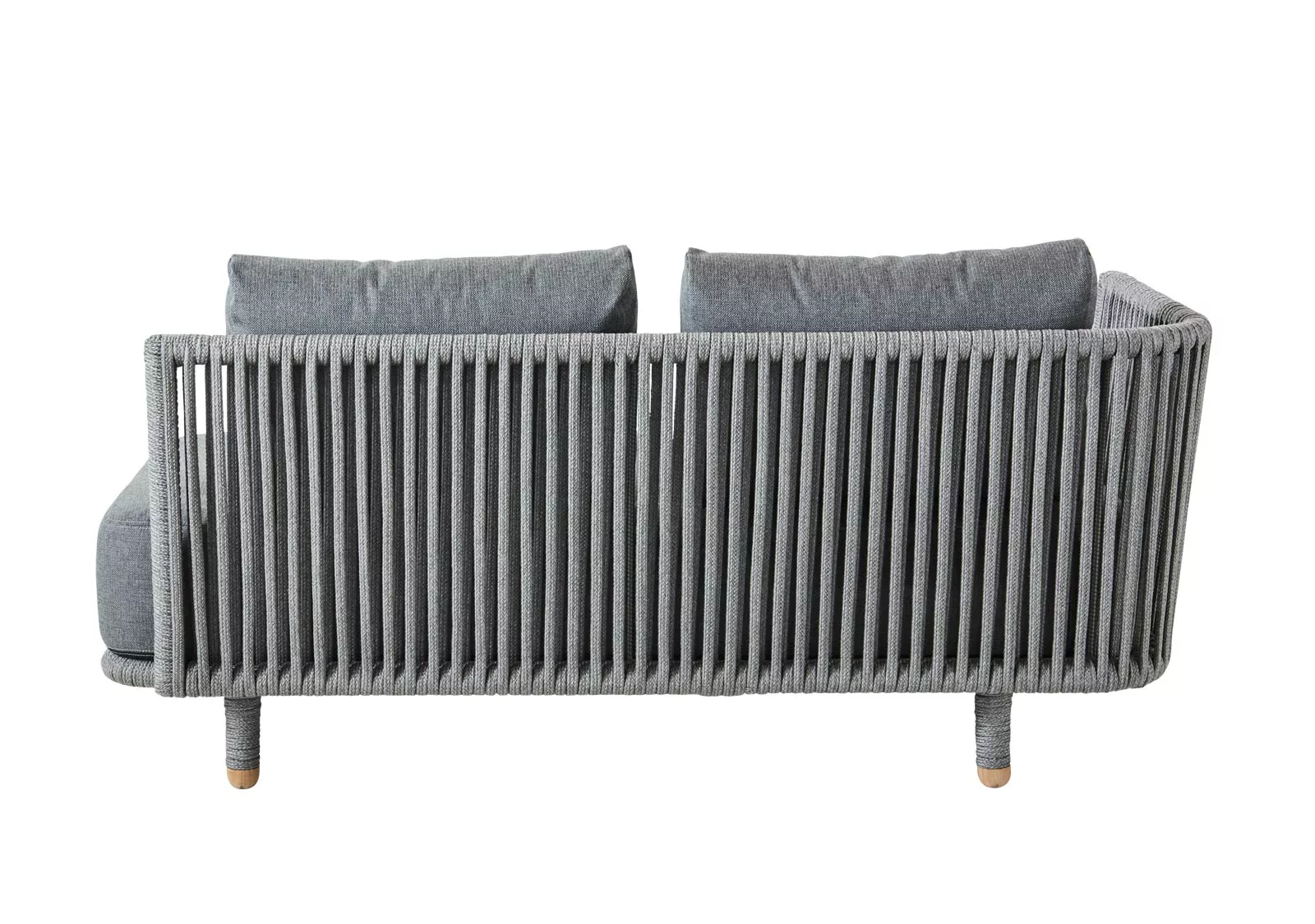 Das Zweisitzer-Sofa Moments, rechts, wurde vom dänischen Designerduo Foersom & Hiort-Lorenzen entworfen. Das Sofa besticht durch sein elegantes, transparentes und minimalistisches Design, das charakteristisch für die skandinavische Ästhetik ist und neue Maßstäbe in puncto Vielseitigkeit und Flexibilität setzt. Das Sofa ist mit Soft Rope und AirTouch QuickDry Kissen von Cane-line ausgestattet. Dank der speziellen Technologie des QuickDry-Systems von Cane-line sind die Polster etwa eine Stunde nach einem Regenschauer wieder trocken. Sie haben die Möglichkeit, aus verschiedenen Modulen zu wählen und sich Ihre ganz eigene Lounge zusammenzustellen.