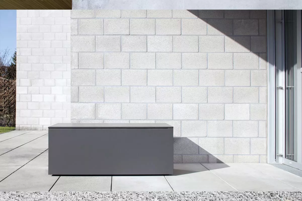 Die Kissentruhe El Pecho aus witterungsbeständigem HPL-Material in Weiß oder Anthrazit ist die elegante Unterbringung für alle Ihre Kissen und Auflagen - und funktionale Anrichte zugleich, und das dort, wo Sie es nutzen: in Ihrem Garten. Die ausgeklügelte Konstruktion sorgt für eine gute Belüftung der eingelagerten Kissen, sodass einer Nutzung zu allen Jahreszeiten nichts im Wege steht. Gasdruckfedern erleichtern das Öffnen und verhindern das unbeabsichtigte Überschlagen des Deckels. Durch das schlichte Design und das verwendete HPL-Material fügt sich die Kissentruhe El Pecho in jede unserer Outdoor-Kollektionen nahtlos ein - egal ob Riva, Riva Lounge, Jig oder Tension. Viele Sondermaße auf Anfrage möglich.