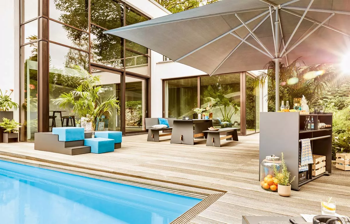 Couchtisch, Pflanzgefäß, Schattenspender und Raumteiler: Mit der neuen Ticino-Serie verwandeln Sie Räume und Terrassen nach Belieben. Sie können Ticino drehen und wenden, wie Sie wollen - die architektonischen Gestaltungsmöglichkeiten der hochwertigen Möbel sind nahezu grenzenlos.
