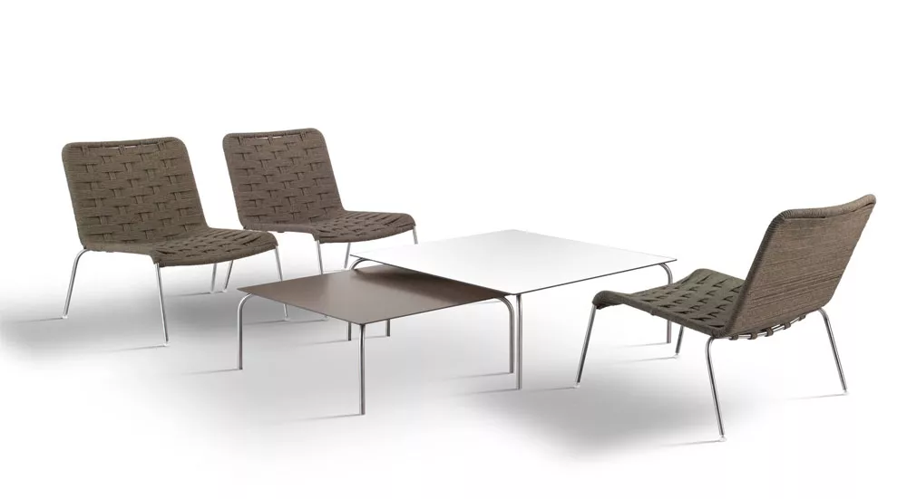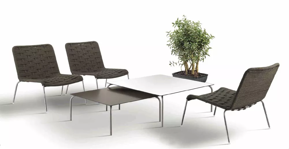 In architektonisch klarem, urbanem Design zeigt sich die Kollektion Jubeae von Coro. Das Outdoor Gartenmöbel Jubeae stellt eine spannende Kombination von exzellent verarbeitetem Edelstahl und hochwertigem, wetterfestem Kunststoffgeflecht dar. Die geflochtene Rückenlehne besteht aus einer Acryl Schnur, gespannt auf einem Gestell aus gebürstetem Edelstahl. Die Kollektion Jubeae bietet Stühle (mit oder ohne Armlehnen), Loungesessel mit Armlehnenund Loungetische mit Edelstahlgestell und Aluminium Tischplatte. Sitze und Rückenlehnen sind entweder mit verstärkter PVC Nylonschnur/Acrylschnur (in verschiedenen Farben) oder SUN Gewebe gefertigt. Produkteigenschaften- Gestell aus Edelstahl gebürstet oder weiß lackiert