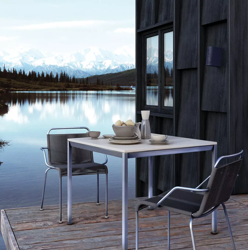 In architektonisch klarem, urbanem Design zeigt sich die Kollektion Jubeae von Coro. Das Outdoor Gartenmöbel Jubeae stellt eine spannende Kombination von exzellent verarbeitetem Edelstahl und hochwertigem, wetterfestem Kunststoffgeflecht dar. Die geflochtene Rückenlehne besteht aus einer Acryl Schnur, gespannt auf einem Gestell aus gebürstetem Edelstahl. Die Kollektion Jubeae bietet Stühle (mit oder ohne Armlehnen), Loungesessel und Loungetische mit Edelstahlgestell und Aluminium Tischplatte. Sitze und Rückenlehnen sind entweder mit verstärkter PVC Nylonschnur/Acrylschnur (in verschiedenen Farben) oder SUN Gewebe gefertigt.