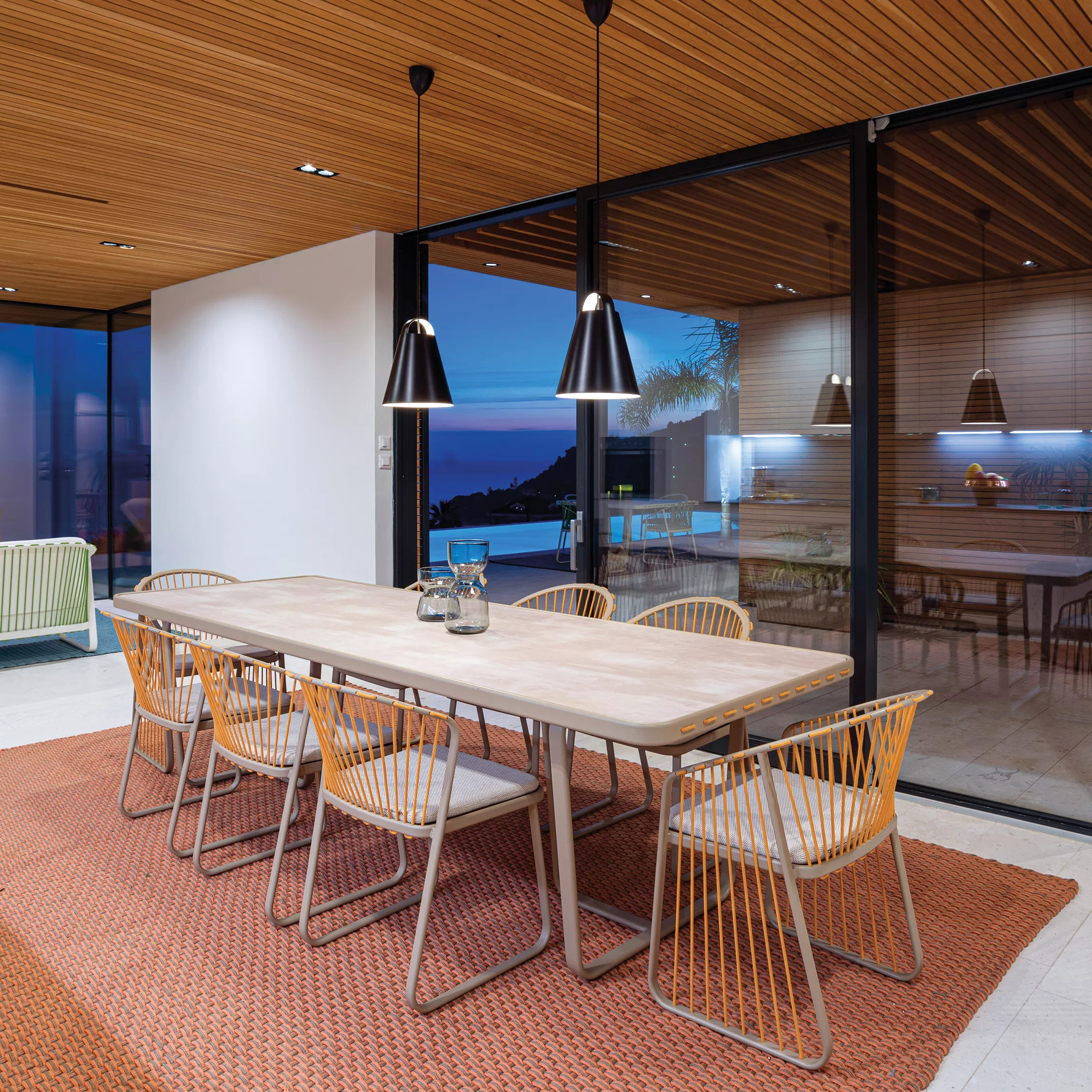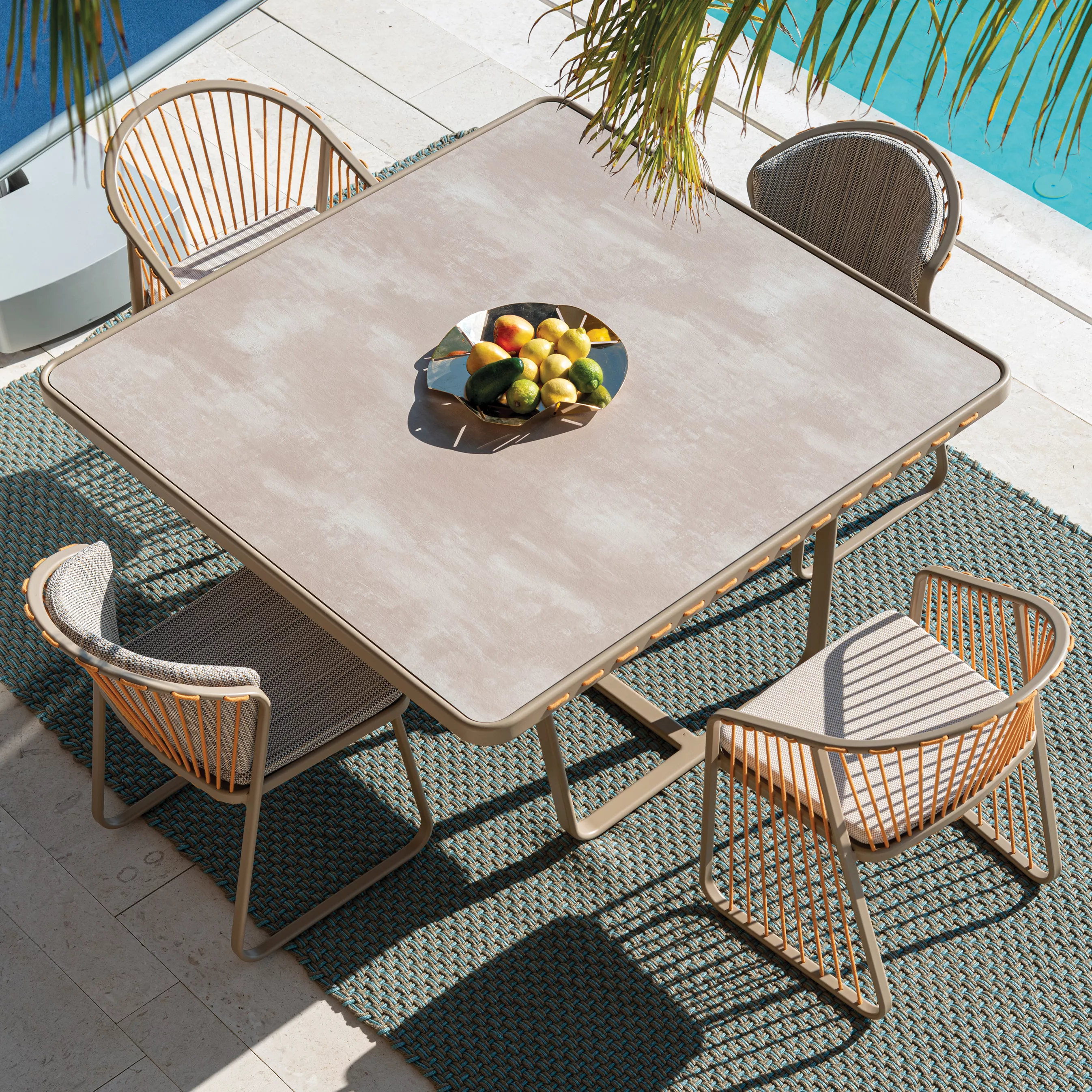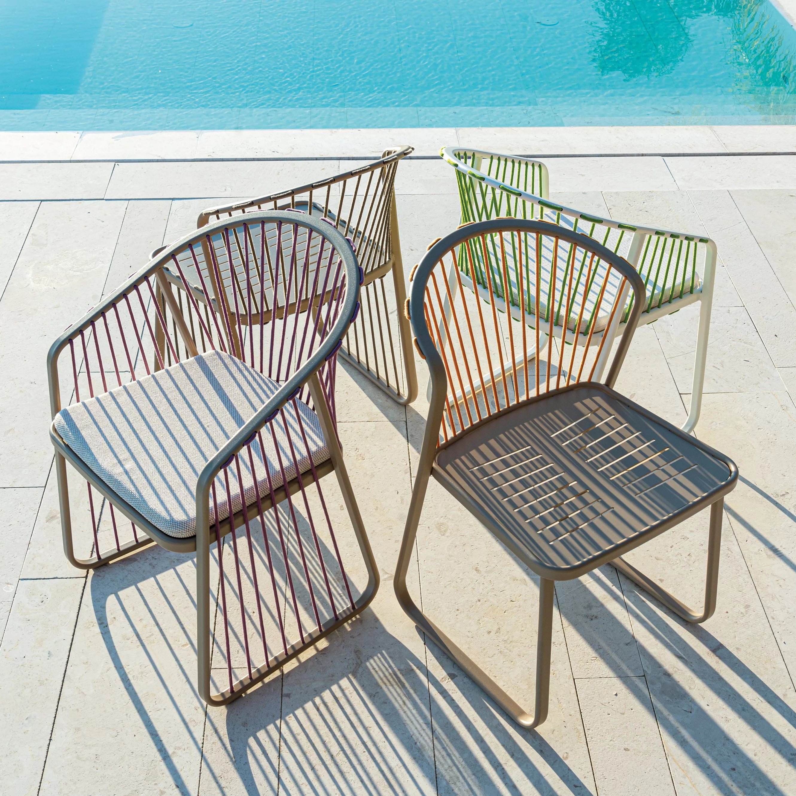 Sally entstand aus der Idee, eine Outdoor-Möbelkollektion zu kreieren, die neue konstruktive und formale Lösungen einführt: Eine leichte und elegante Aluminiumstruktur wird durch das innovative Design der Schnur, die in den Rahmen ein- und ausgeht, bereichert, wodurch eine neue Zugstruktur entsteht. Sally steht nicht für ein einzelnes Produkt, sondern für eine artikulierte Familie, die zeitgenössisches Wohnen mit einem starken und erkennbaren Zeichen interpretiert.