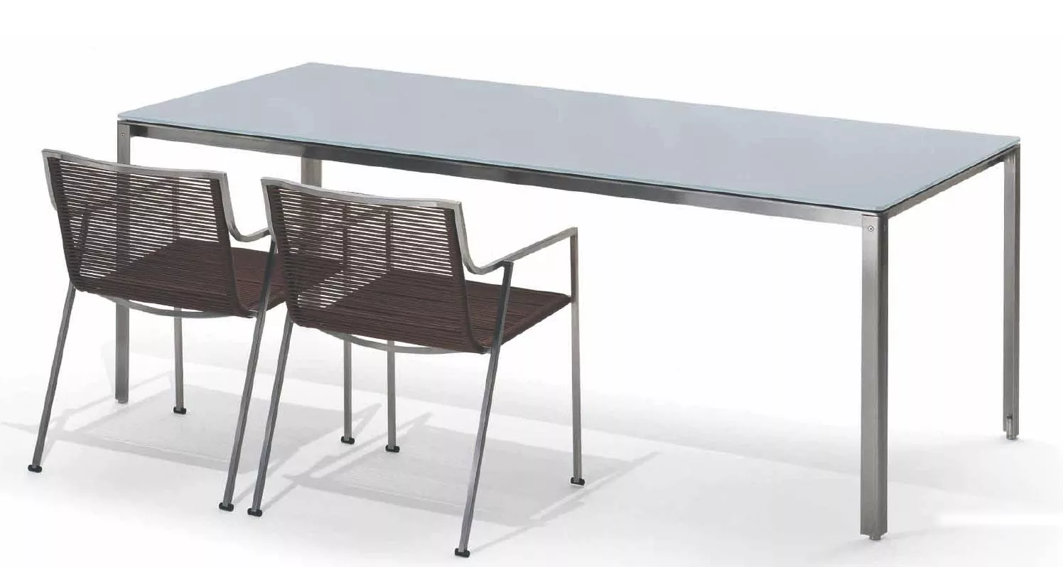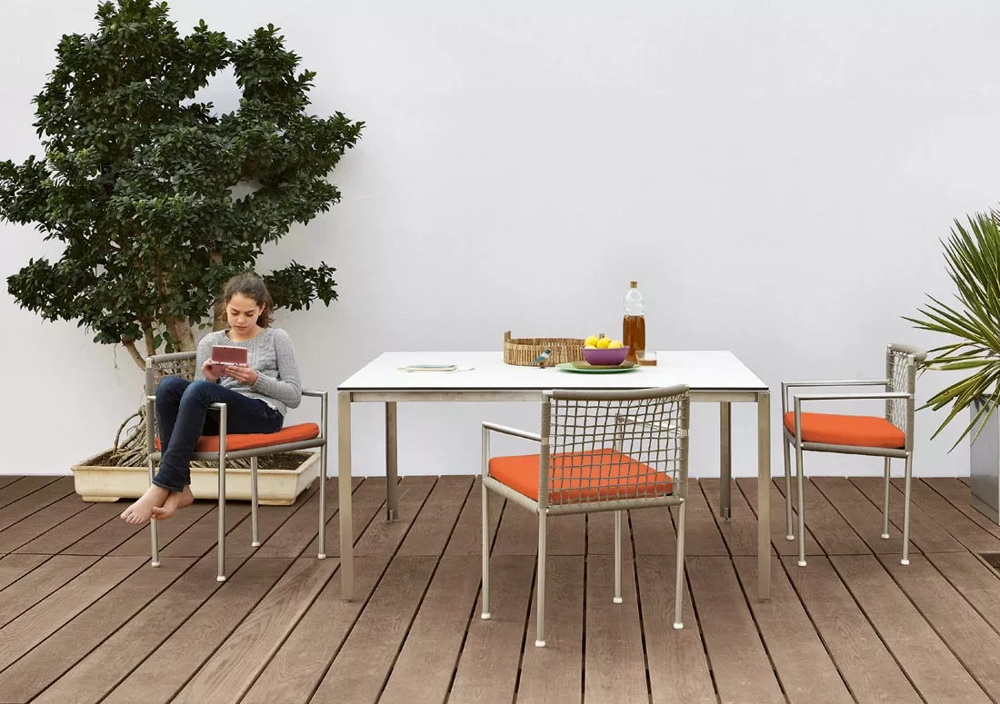 In architektonisch klarem, urbanem Design zeigt sich die Kollektion Shot von Coro. Das Outdoor Gartenmöbel Shot stellt eine spannende Kombination von exzellent verarbeitetem Edelstahl und hochwertigen, wetterfesten Stoffen dar. Die Kollektion Shot bietet eine Reihe von quadratischen oder rechteckigen Esstischen mit Eledelstahlgestell und Tischplatten in einer HPL, Polyurethane, sowie Zimbabwe Stein Ausführung.