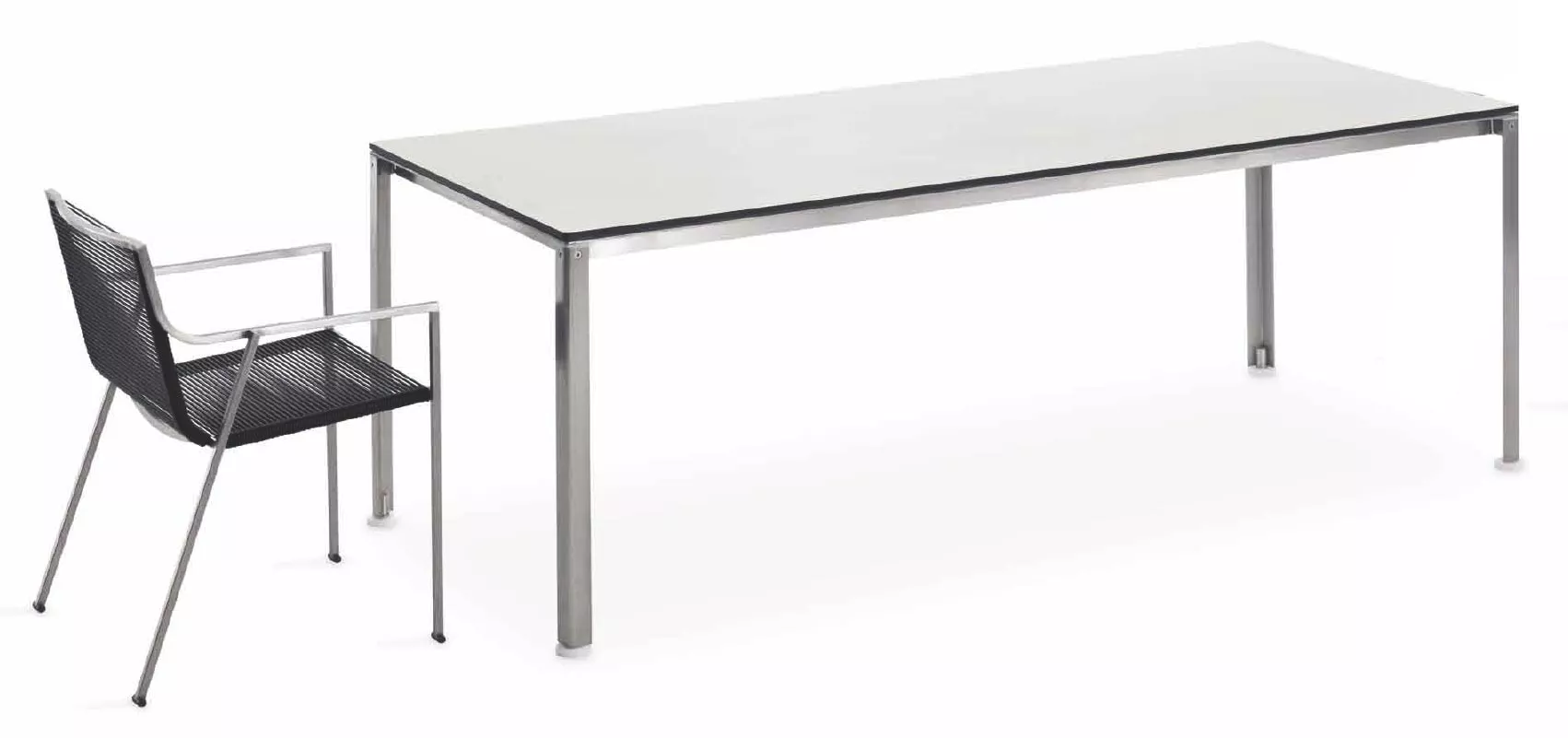 In architektonisch klarem, urbanem Design zeigt sich die Kollektion Shot von Coro. Das Outdoor Gartenmöbel Shot stellt eine spannende Kombination von exzellent verarbeitetem Edelstahl und hochwertigen, wetterfesten Stoffen dar. Die Kollektion Shot bietet eine Reihe von quadratischen oder rechteckigen Esstischen mit Eledelstahlgestell und Tischplatten in einer HPL, Polyurethane sowie Zimbabwe Stein Ausführung.