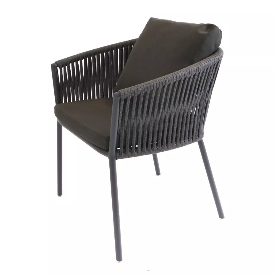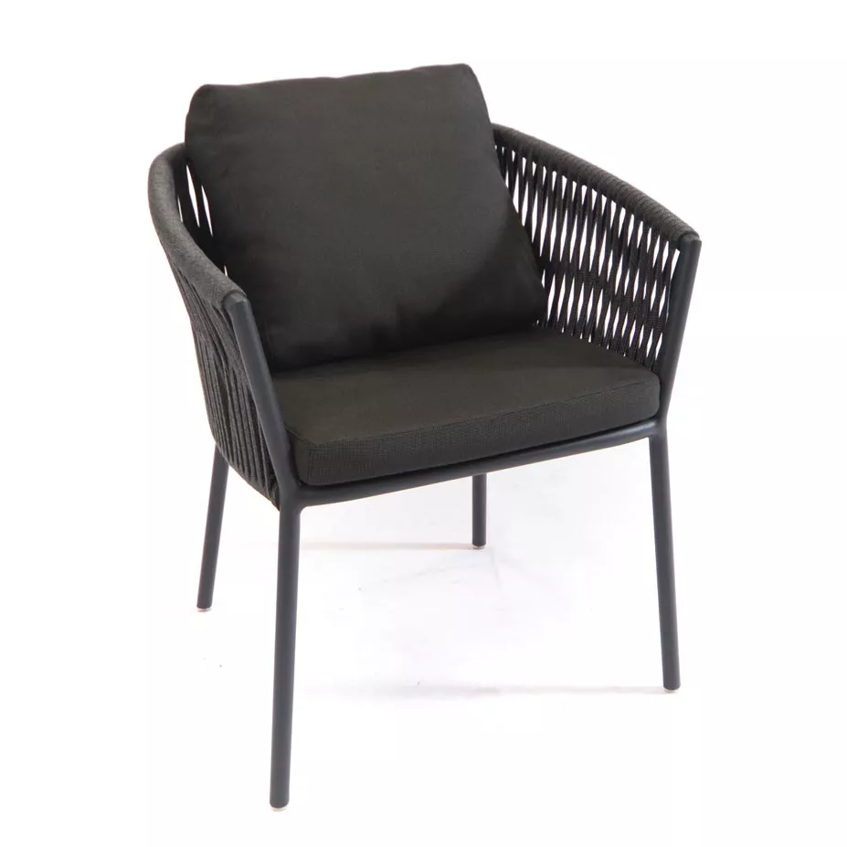 Armlehnstuhl mit Aluminiumgestell anthrazit / matt Strukturlack und fm-flat rope antrazit Geflecht.