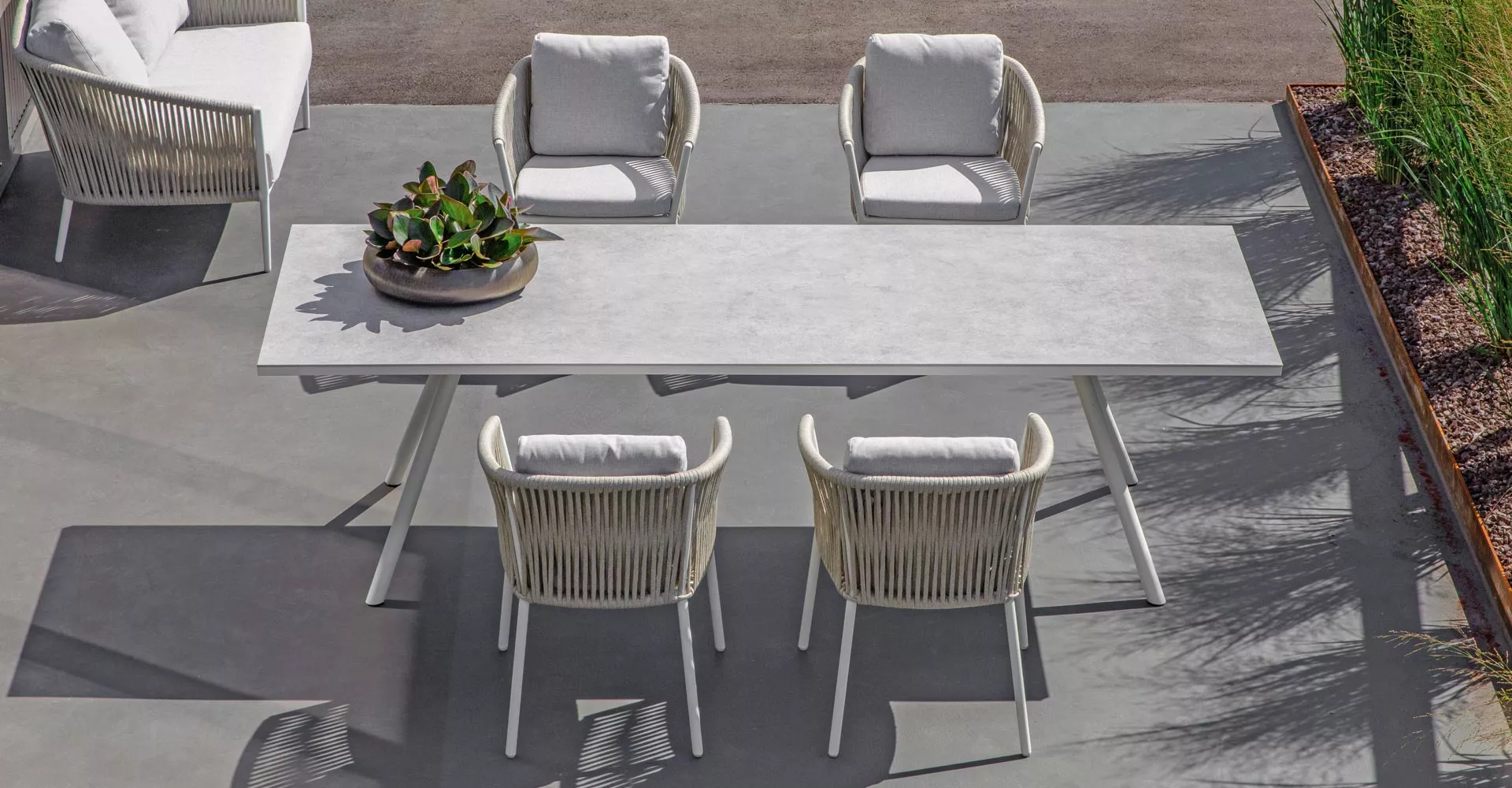 Die eingesetzten Materialen sind für den Dauereinsatz im Freien geeignet. Das Gestell ist aus hochwertigem Aluminium gefertigt und somit äußerst robust, wetterbeständig und pflegeleicht. Das Cosmo Synthetikbandgeflecht ist besonders witterungsbeständig, UV-beständig und reißfest. Zudem bietet es einen hervorragenden Sitzkomfort und ist extrem pflegeleicht.