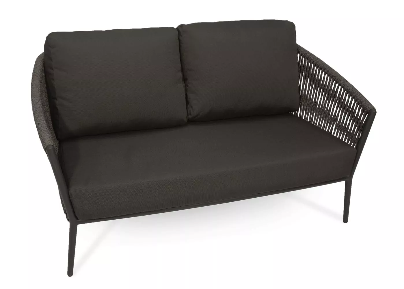Loungesofa mit Aluminiumgestell anthrazit / matt Strukturlack und fm-flat rope antrazit Geflecht.