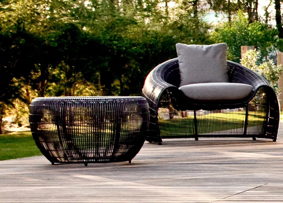 Das Synthetikgeflecht ist besonders widerstandsfähig gegenüber Hitze, Regen, Eis, Schnee und UV-Strahlung.