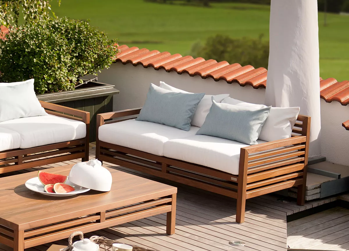 Die drei verfügbaren Werkstoffe „Lignum-T", "Lerche" und "Sipo" erlauben es, edle Echtholzmöbel für den Außenbereich mit hoher Lebensdauer zu fertigen. Bequeme Sitzauflagen bieten Ihnen und Ihren Gästen Entspannung pur. Auch hier sind individuelle Größen möglich.