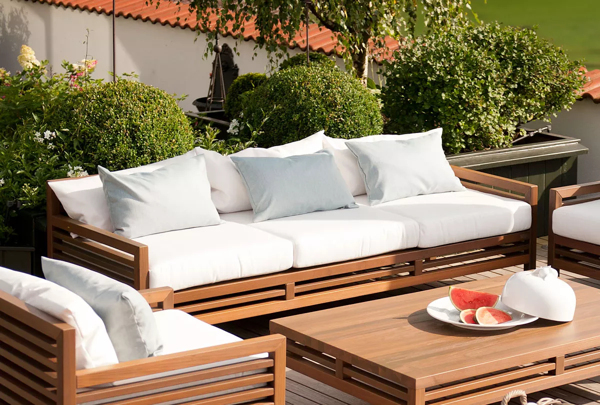 Cubic Outdoor Living CUBIC Lounge Sofa 3-SitzerCubic Lounge Sofa 3-Sitzer inkl. Sitz- und RückenkissenDer neue Werkstoff „Lignum-T“ zeichnet sich durch extreme Witterungsbeständigkeit und formstabile Verarbeitung aus. CUBIC ist das ideale Möbel- und Stauraumkonzept für exklusive Ansprüche. Ihr Wohnzimmer im Freien: Cubic Lounge.Die drei verfügbaren Werkstoffe „Lignum-T", "Lerche" und "Sipo" erlauben es, edle Echtholzmöbel für den Außenbereich mit hoher Lebensdauer zu fertigen. Bequeme Sitzauflagen bieten Ihnen und Ihren Gästen Entspannung pur. Auch hier sind individuelle Größen möglich. QualitätHandwerk „Made in Germany“: Wetterfest, wasserdicht, hochwertigste Materialien, speziell entwickeltes Material „Lignum-T“, Ausgangskontrolle mit Echtheitszertifikat. Justierbare StandfüßeImmer einen festen Stand garantieren verstellbare Füße, die bis zu 30 mm Höhendifferenz des Untergrundes ausgleichen. OberflächeDie gesamte CUBIC Kollektion extrem witterungsbeständig. Wasser perlt ab, das Material nimmt keinerlei Feuchtigkeit auf. Stoffe Cubic Polster- und Kissenbezüge werden aus spinndüsengefärbten Acryl-Fasern hergestellt, die speziell für den Außeneinsatz ausgelegt sind. Sie haben die Wahl zwischen 10 Dessins. Extrem kratzfeste Oberflächen erhält man mit Porzellankeramik. Nebenstehende Varianten stehen zur Auswahl. Lassen Sie sich inspirieren! Maße (B × T × H) 222 × 80 × 72 cm