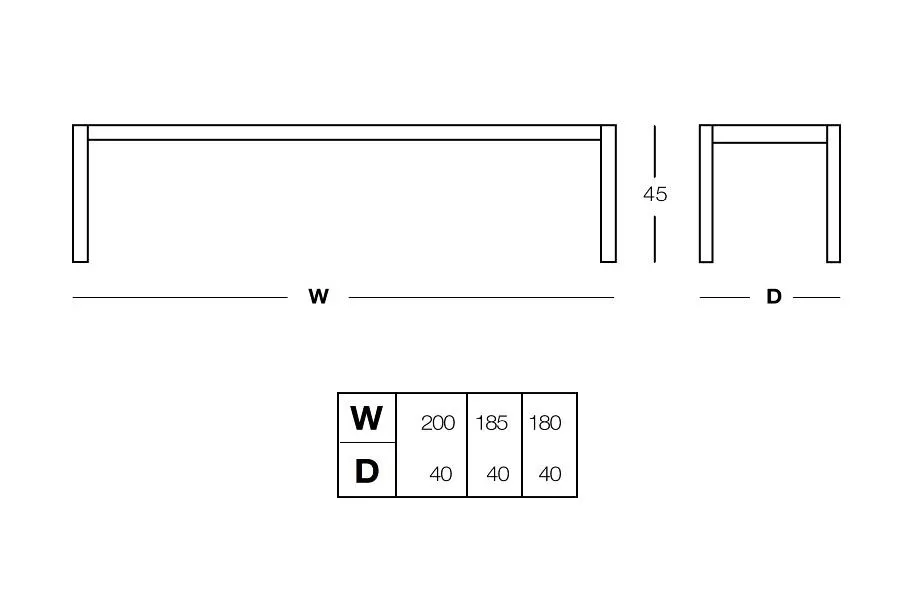 Bivaq Gartenmöbel • Kollektion Dats • Bank Dats 45 cm