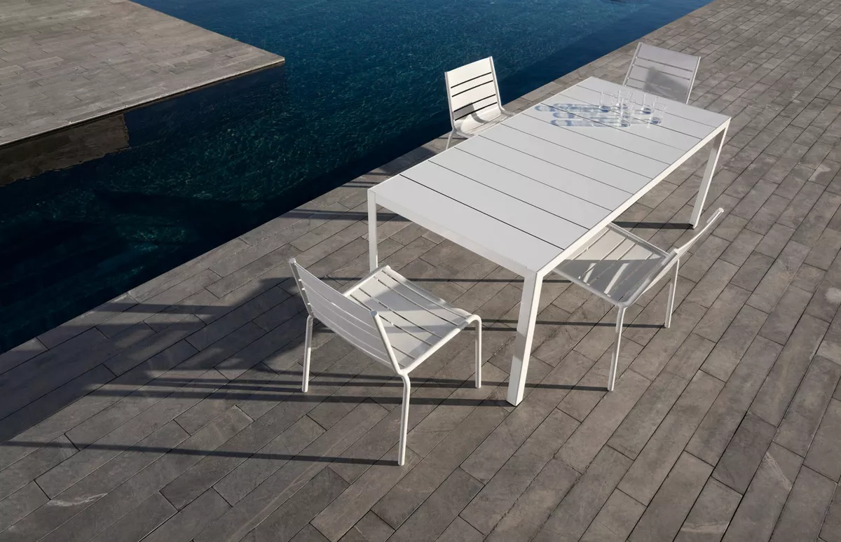 Übersicht Stoffauswahl Bivaq Bivaq Katalog Dats Esstisch 74 cm von Bivaq Bivaq Gartenmöbel • Kollektion Dats • Esstisch Dats 74 cm Die Dats Tischsets sind in drei verschiedenen Höhen (74, 45 und 35 cm) aus lackiertem Aluminium hergestellt und für den Innen- sowie Außenbereich geeignet. Hochwertige Tischplatten aus Klarglas, farbigem Glas, Keramik und HPL bilden mehr als 500 Farb- und Materialkombinationen. Die leichten Materialien und geradliniges Design gewährleisten, dass die Design Gartenmöbel in jeder Umgebung oder architektonischen Ort platziert werden kann. Aluminiumgestelleloxiert TischplatteHPL PhenolicKlarglas, Farbglas 8 mmKeramik 3+3 mm Maße (B × T × H) 200 × 100 × 74 cm Weitere Farben gegen Aufpreis von 10% auf Anfrage Bivaq Dats Outdoor/indoor table program made of extruded aluminium and final finish made with polyester powder coating. Tempered glasses, thickness 8 mm. Table tops and legs are delivered unassembled