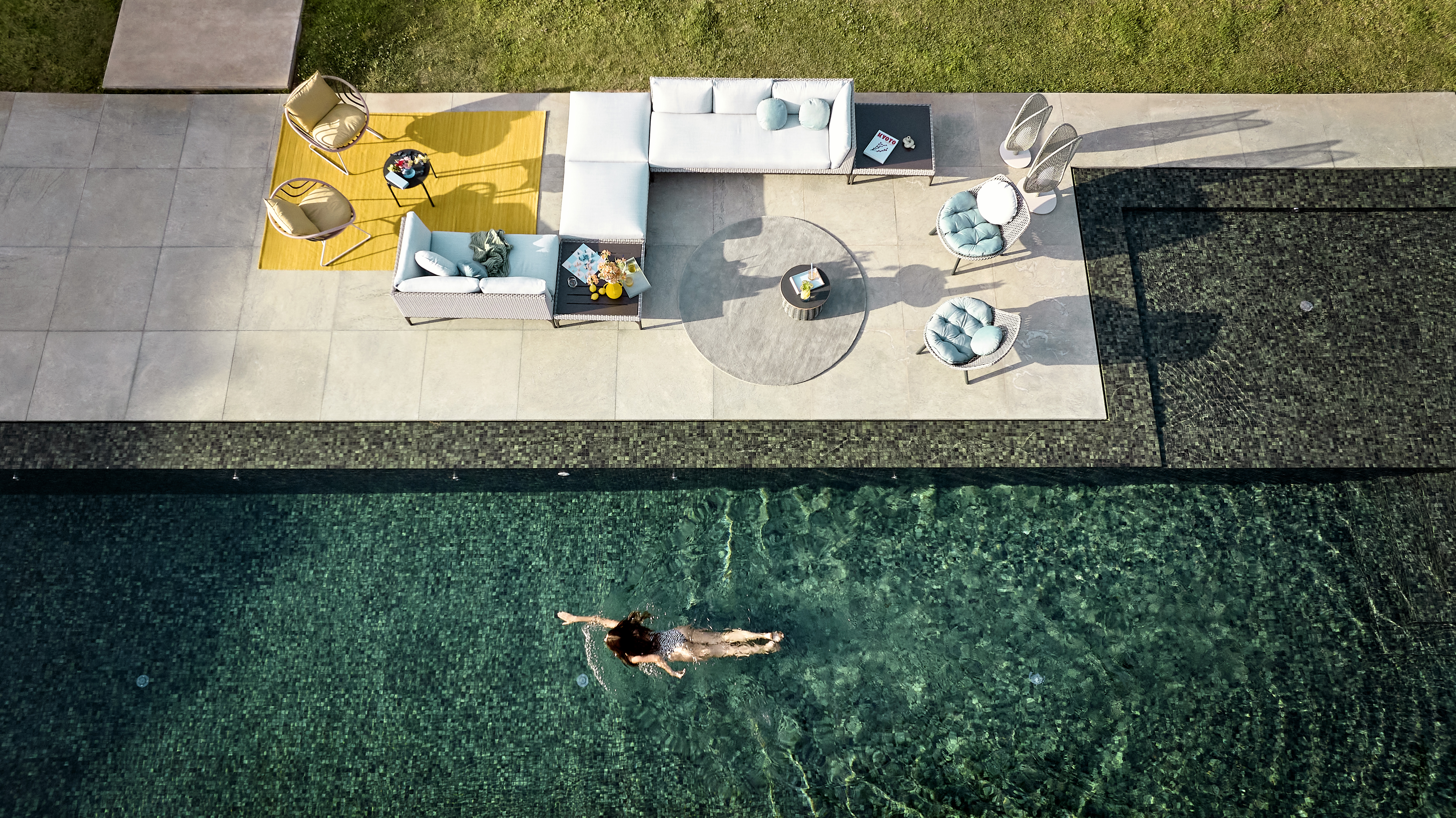 Obwohl der MBRACE im Ursprungsentwurf von Sebastian Herkner ein Aluminiumgestell hatte, entschied man sich vorerst nur die Teak-Variante auf den Markt zu bringen. So schön diese auch ist, freuen wir uns, dass der moderne Klassiker jetzt auch mit einem minimalistischeren Aluminiumgestell erhältlich ist. Dabei kann man aus vier verschiedene Gestellfarben und sechs Geflechtfarben aus der DEDON Faser wählen. Die DEDON Faser ist nicht nur äußerst wetterbeständig und lässt sich weder von Kälte noch von Hitze, Sonne, Regen oder Schnee etwas anhaben, sie weist zudem noch eine außerordentliche Farb- und Strukturstabilität auf und ist unempfindlich gegenüber Chlor- und Salzwasser.