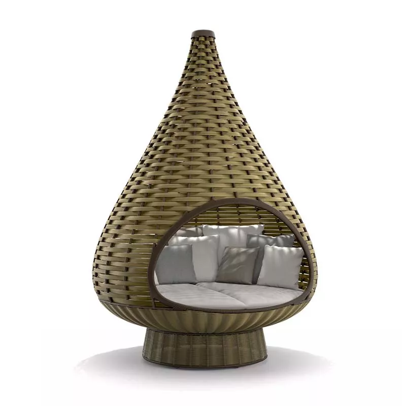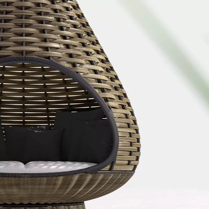 Für die Umsetzung von NESTREST wird eine besonders starke (4 cm statt der üblichen 2 cm) DEDON Faser verwendet, um ein tragendes Gewebe herzustellen, das grandiose Eigenschaften auszeichnet - es bietet Schutz und verhindert unerwünschte Blicke von außen, während man von Innen nahezu ungehindert nach Draußen sehen kann - einfach ein Gefühl von Geborgenheit!