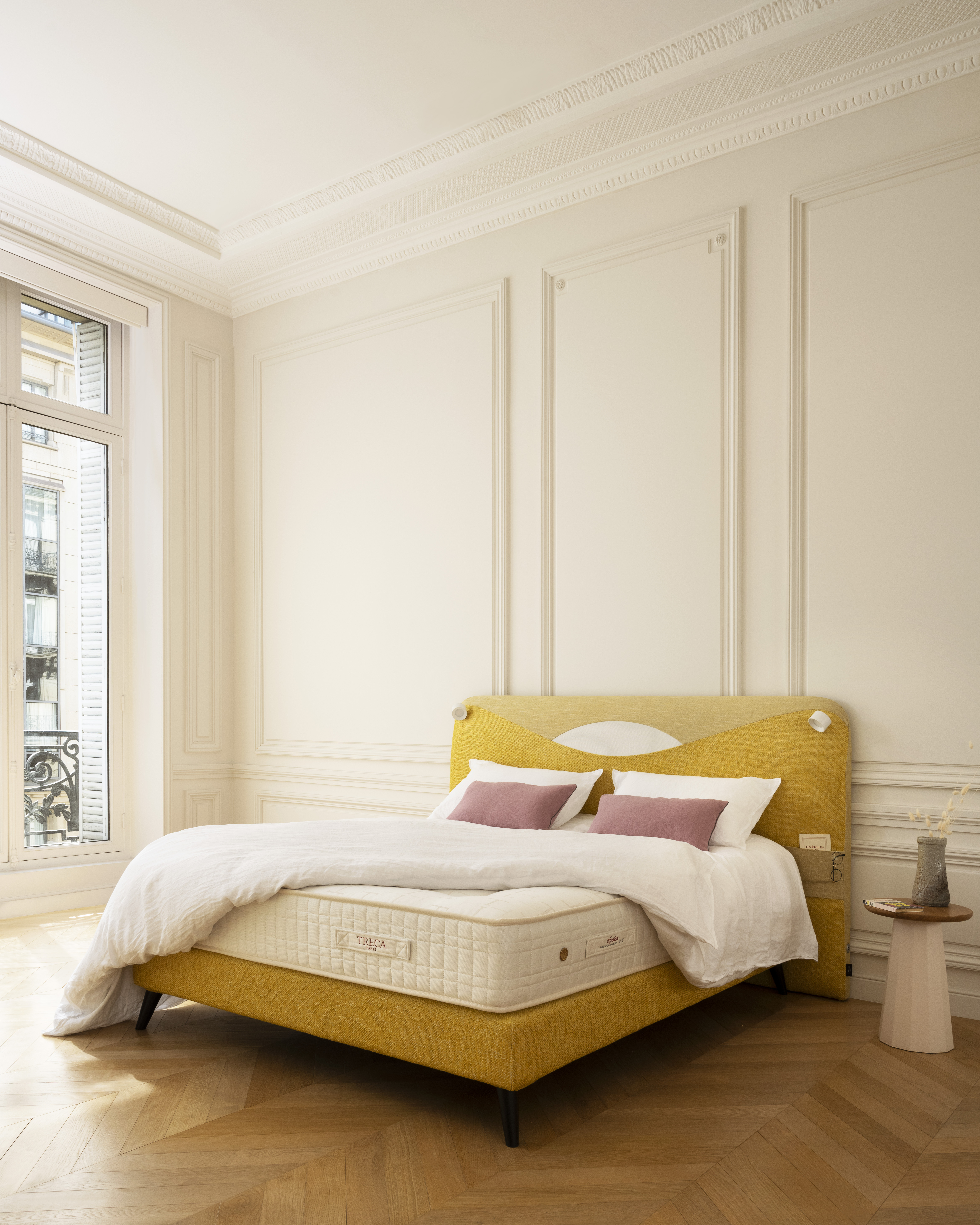TRECA PARIS Komplett-Bett • MY FIRST TRECA Treca Paris SchlaftabelleMit Tréca Paris betreten Sie eine Welt, in der Schlaf zur Kunst wird. Seit Generationen pflegt das Haus seine Handwerkskunst, um Ihnen unvergleichlichen Komfort und französische Eleganz zu bieten. Jedes Bett, jede Matratze wird in Frankreich von Hand gefertigt – mit Sorgfalt, Zeit und der Liebe zum Detail. Tréca steht für maßgeschneiderte Schlafkultur, edle Materialien und das „Art de la Chambre“ – ein Lebensstil, der weit über das reine Schlafen hinausgeht. MY FIRST TRÉCA ist das ideale Komplett-Bett für den Einstieg in die Welt von Tréca. Es verbindet zeitloses Design mit handwerklicher Qualität und außergewöhnlichem Komfort. Das Bett ist wahlweise mit einer durchgehenden Matratze oder mit zwei separaten Matratzen erhältlich – für individuellen Liegekomfort und eine harmonische Optik. Ein perfektes Zusammenspiel aus Eleganz, Funktionalität und französischem Savoir-faire.Merkmale des "My First Treca Bed":1x Kopfteil Fusion H 120 cm 2x Untermatratze Softspring 22 cm1x Untermatratzenbezug 3-seitig abnehmbar1x Set Blockfüße (10 / 15 cm) oder Vintage (8 / 15 cm)1x Set Mittelfüße1x Apollon Matratze oder 2x Apollon MatratzenStoffkategorie: Kat. A (Bezugsstoff, Gewebt, Leinwandbindung; 63% Baumwolle, 37% Leinen)Optionale Matratzenauflage Imperial: Höhe 6 cmEntdecken Sie Apollon – die neue, ökologisch designte Matratze der Imperial-Kollektion:Ausgestattet mit innovativen Air Spring-Taschenfedern bietet sie eine legendäre Federung mit progressiver Anpassung an jede Körperform. So genießen Sie höchste Punktelastizität, perfekte Bewegungsfreiheit und individuellen Liegekomfort. Die Vollpolsterung steht für höchste Qualität und garantiert die Langlebigkeit der Materialien sowie den dauerhaften Erhalt des Komforts. Für ein natürliches Schlafklima sorgen Wolle im Winter und Baumwolle im Sommer – für ein stets ausgeglichenes Temperaturgefühl. Das exklusive Material Softcare®, eine geschützte Innovation von Tréca, bietet zudem ein besonders sanftes und umhüllendes Liegegefühl.Härtegrad: Elastisch, mittel oder fest (Schlaftabelle beachten)Höhe: 25 cm Gewicht: 36 kg Winterseite: Softcare® weich 3 cm, Wolle 500g/m² und Leinen-Seide-Kaschmir 100g/m²Sommerseite: Softcare® fest 1,5 cm, Baumwolle 400g/m² und Leinen-Seide-Kaschmir 100g/m²Drell: Spiegel TRK21 und Seiten TRK22: 96% Viskose, 4% Leinen5 Matratzengriffe und 4 LüfungsventileKeder: 100% BaumwolleEin besonderes Merkmal von Treca ist die handwerklich anspruchsvolle, individuelle Gestaltung des Bezugs. Die Untermatratze wird wahlweise im Kundenstoff, in Kundenleder oder in der Prêt-à-Porter-Ausführung gefertigt. Gerade die Verarbeitung kundeneigener Stoffe sowie anspruchsvoller Fremdmaterialien zeugt von der besonderen Kompetenz und handwerklichen Präzision erfahrener Polsterer. So erhält jedes Bett eine unverwechselbare, persönliche Note und wird zu einem einzigartigen Bestandteil Ihres Schlafraums.Gerne bieten wir Ihnen auf Anfrage eine erweiterte Auswahl an Stoffen an. Auch bei der Verwendung eines eigenen Stoffes steht Ihnen unser Kundenservice mit individueller und kompetenter Beratung jederzeit gerne zur Verfügung. Drell: Der sichtbare Teil der Matratze, der Stoff, der die Matratze umhüllt und schützt