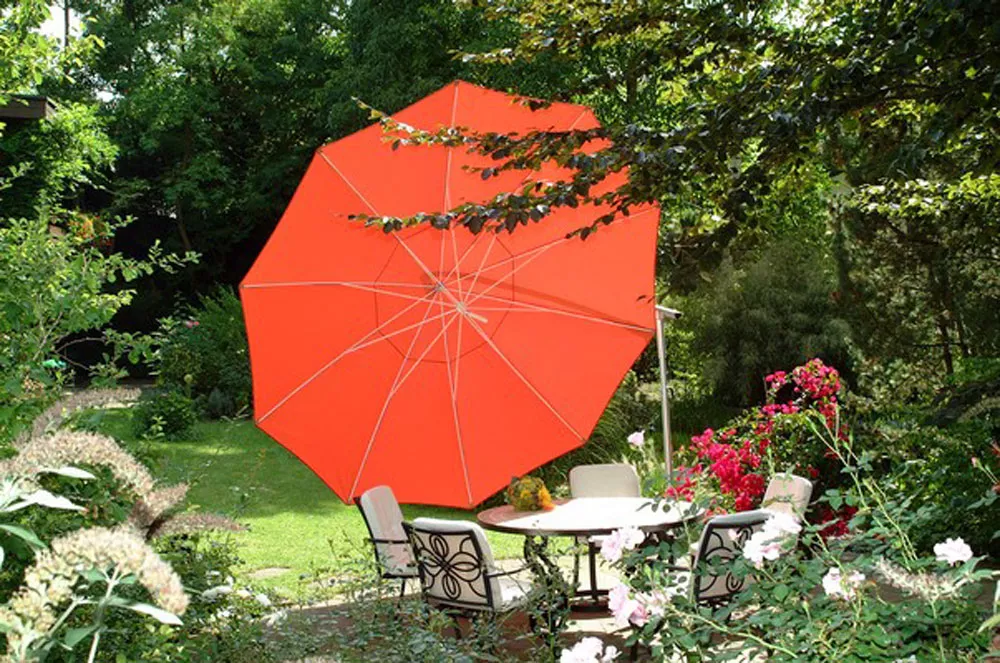- Schirm auch senkrecht stellbar, z.B. als Sichtschutz