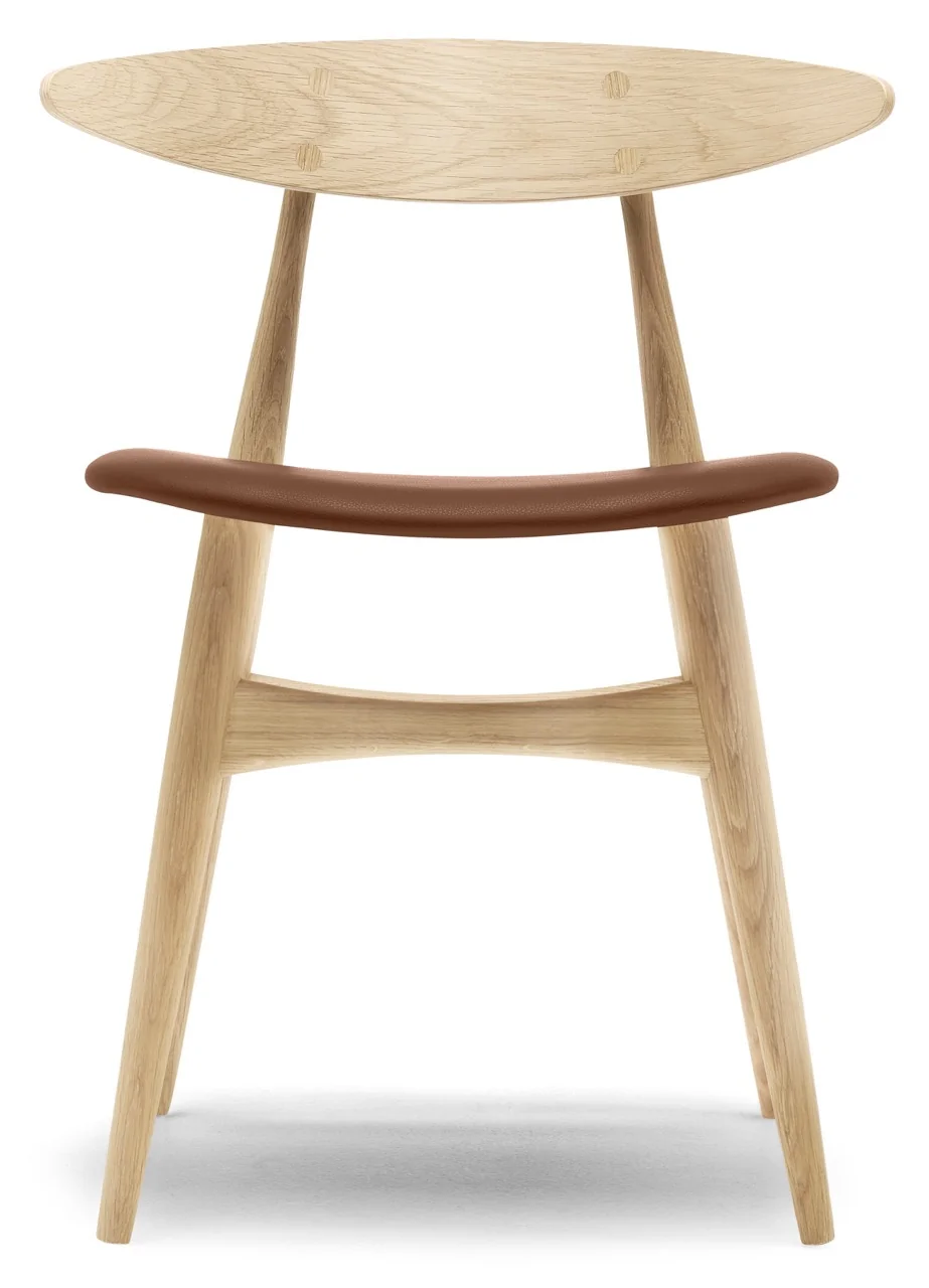 Charakteristisch für den Stuhl sind die geschwungenen, sich verjüngenden Beine, die an den Belastungspunkten dicker sind und sich zum Boden hin verjüngen. Dieses Designmerkmal verleiht dem CH33P ein leichtes Erscheinungsbild bei gleichzeitiger Stabilität und Langlebigkeit.
