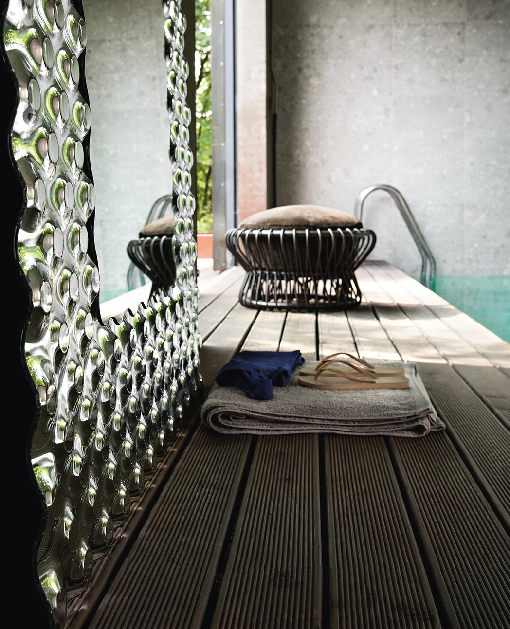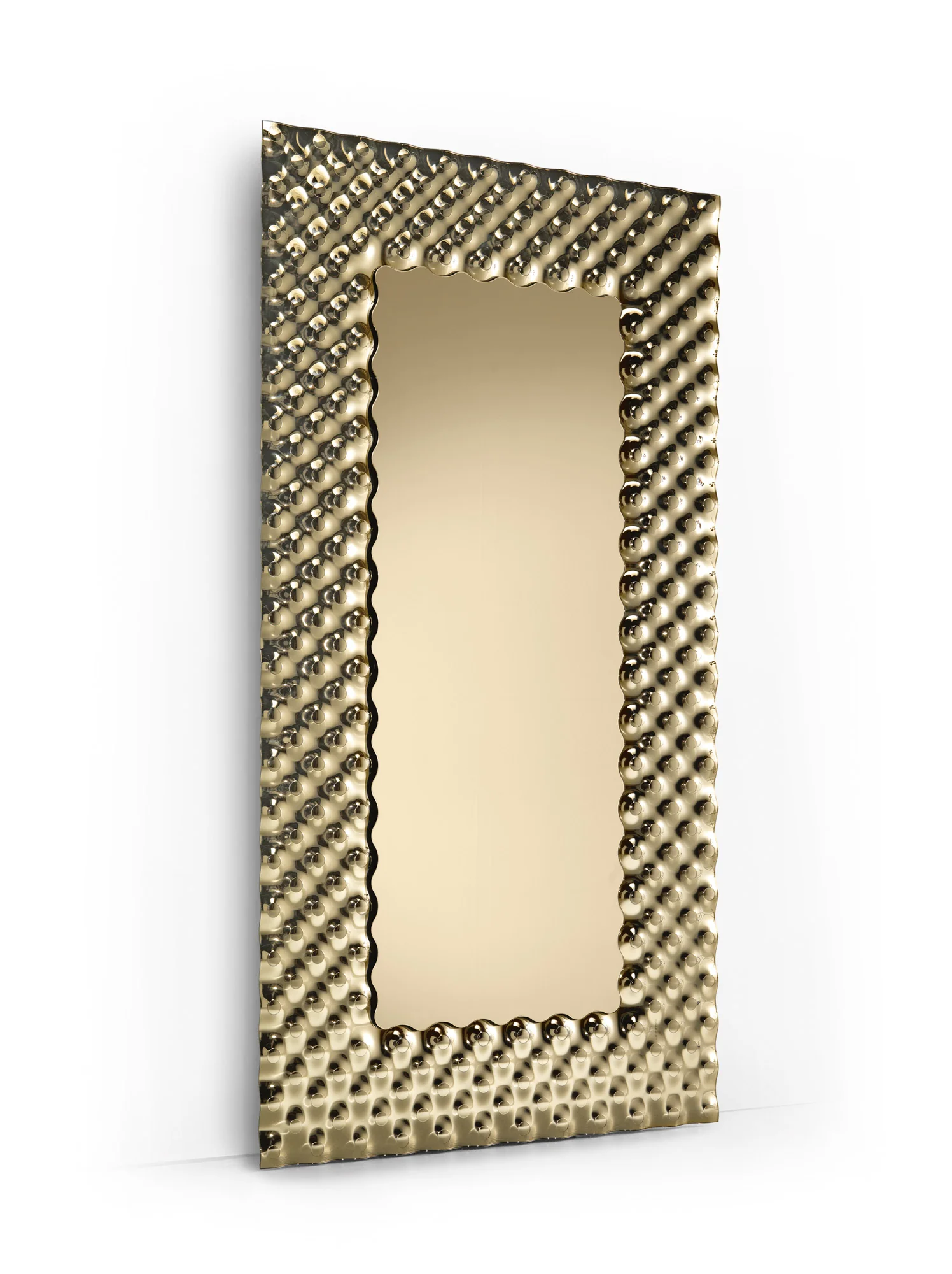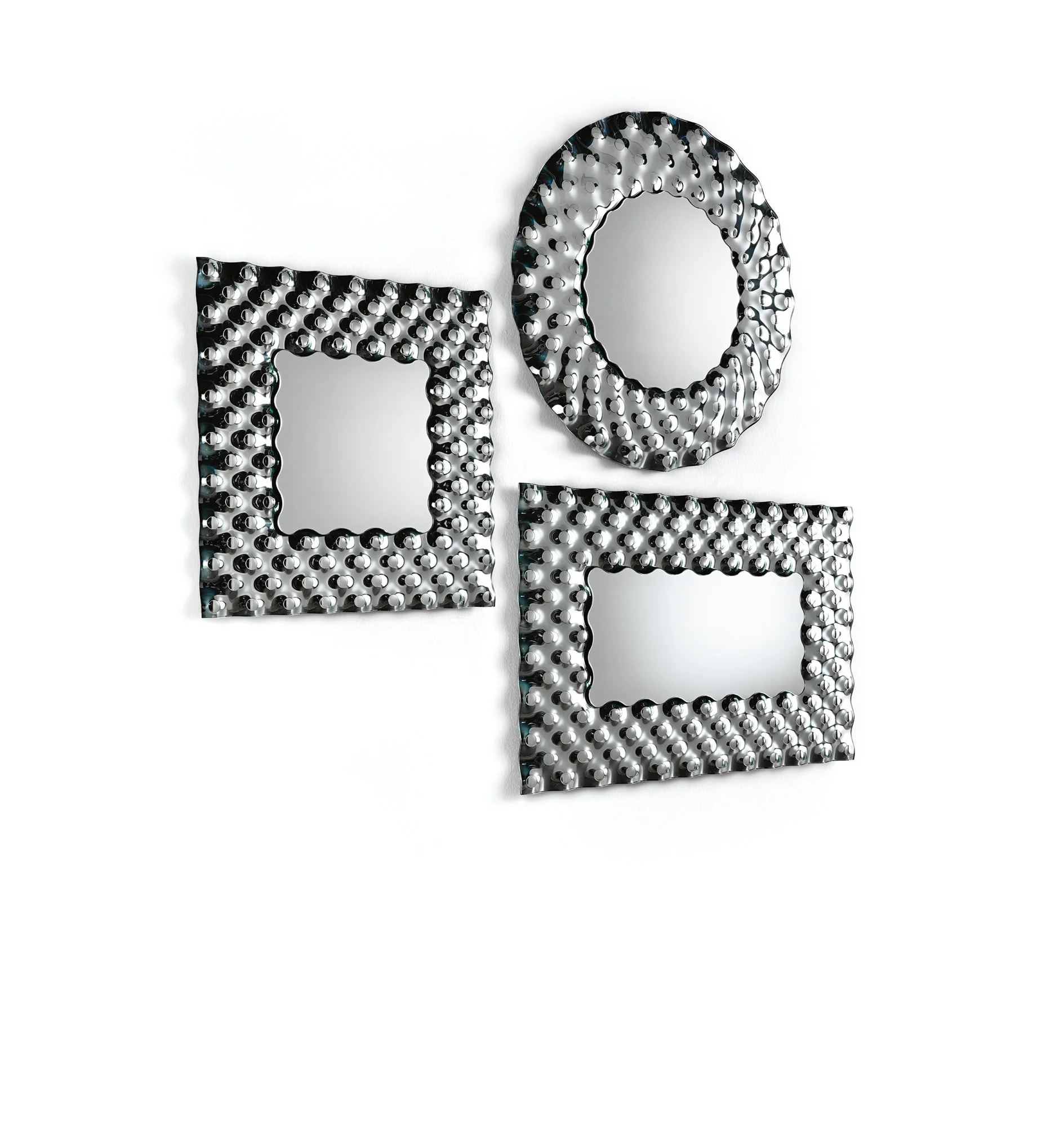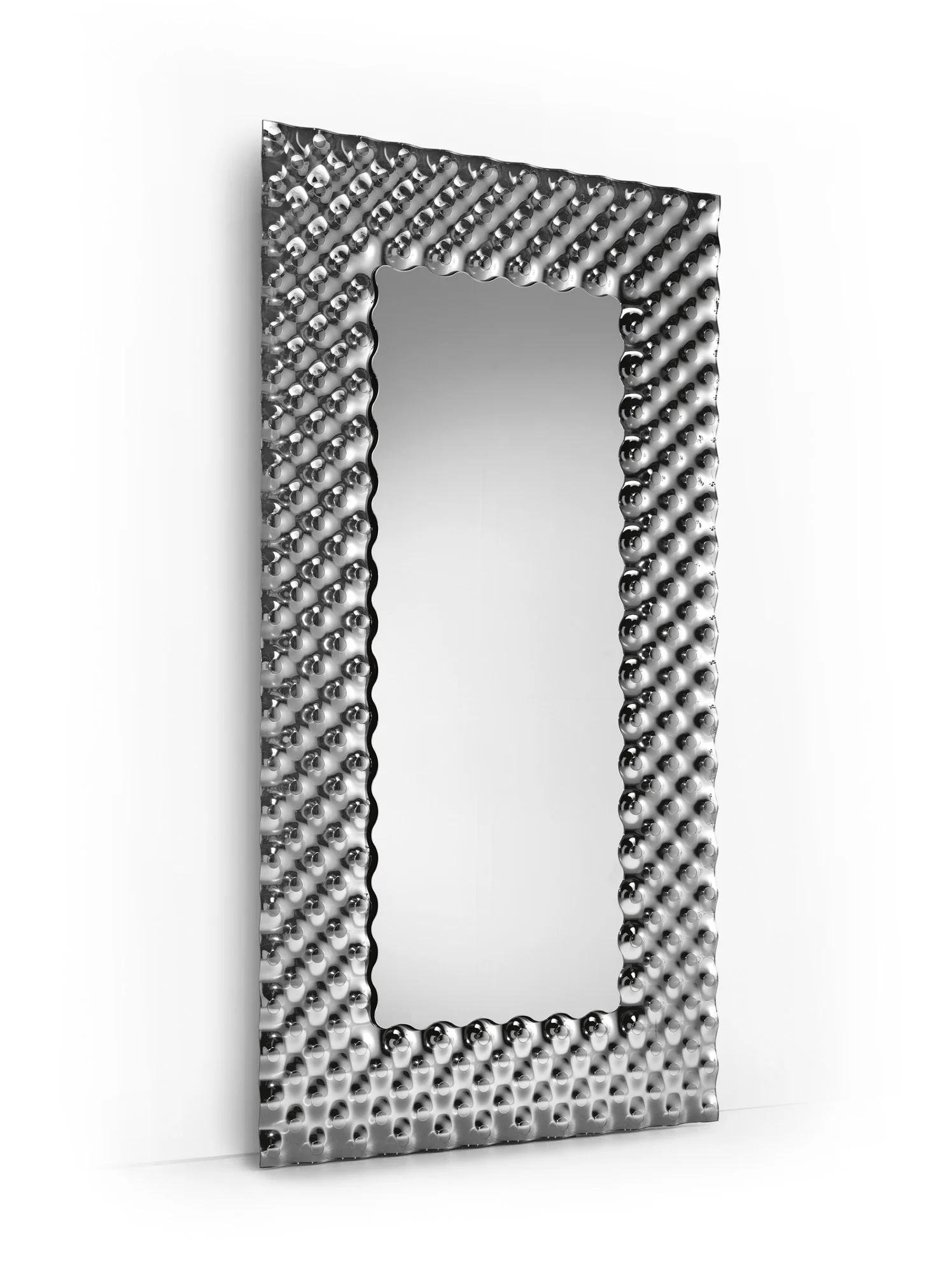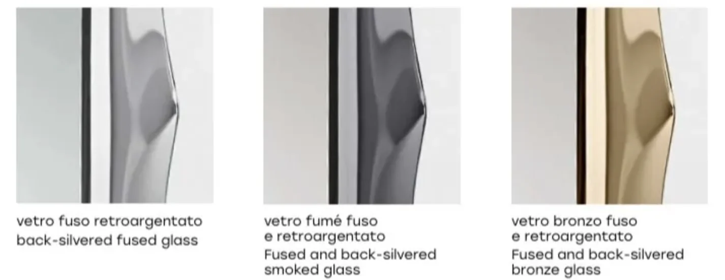 FIAM CHRISTINE Wandspiegel Eleganter Wandspiegel CHRISTINE aus geschmolzenem Glas Design von Helidon Xhixha & Dante O. Benini-Luca Gonzo Versilberte, geschmolzene Spiegelfläche mit 6 mm flacher Ausführung. Der rückseitige Rahmen aus lackiertem Metall sorgt für Stabilität und eine hochwertige Optik. Flexibel einsetzbar – sowohl vertikal als auch horizontal aufhängbar.Die Schmiedenspuren sind ein eigentuemliches und unverwechselbares Merkmal des Artikels und garantieren die handwerkliche Kunstfertigkeit vom Objekt.Bitte beachten Sie: Die Ausführungen in Rauch- oder Bronzeglas beziehen sich ausschließlich auf den Rahmen – die Spiegelfläche bleibt klar versilbert. Für weitere Informationen und weitere Varianten der Spiegelfläche steht Ihnen unser Kundenservice gerne zur Verfügung.Netto-Gewicht: 28 kg bis 48 kg Gegen Aufpreis erhältlich in Rauchglas und Bronzeglas