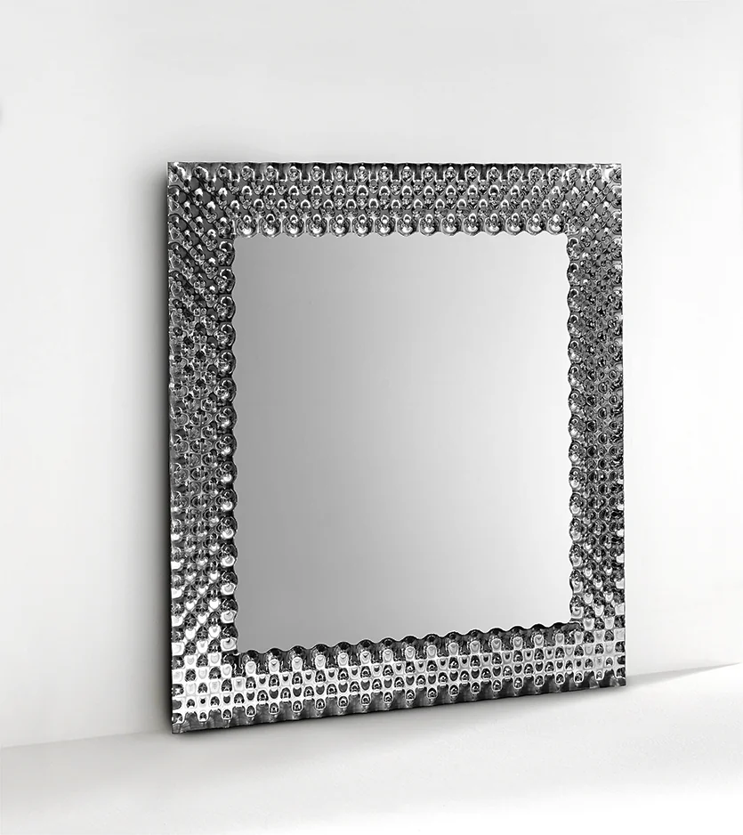 FIAM CAADRE WandspiegelCAADRE Spiegel von FIAM – Design von Philippe StarckDieser elegante Wandspiegel überzeugt durch seinen außergewöhnlichen Aufbau: Er besteht aus vier einzelnen Elementen, gefertigt aus 6 mm starkem, gebogenem Glas und hochwertig versilbert. Je nach Wunsch ist der Spiegel auch in halbreflektierendem Titanium-Glas oder in stilvollem, versilbertem Bronzeglas erhältlich – perfekt, um unterschiedliche Lichtstimmungen und Raumkonzepte zu unterstreichen. Der Spiegel kann sowohl vertikal als auch horizontal aufgehängt werden und passt sich damit flexibel jeder Raumgestaltung an. Auf Maß gefertigt oder in modularen Konfigurationen erhältlich, lässt er sich individuell an Ihre Bedürfnisse anpassen. Ein hochwertiges Designobjekt, das Funktionalität mit moderner Ästhetik vereint.Bitte beachten Sie: Die Ausführungen in Titan- oder Bronzeglas beziehen sich ausschließlich auf den Rahmen – die Spiegelfläche bleibt klar versilbert. Für weitere Informationen und weitere Varianten der Spiegelfläche steht Ihnen unser Kundenservice gerne zur Verfügung.Netto-Gewicht: 22 kg bis 40 kg Gegen Aufpreis erhältlich in Titan- (halbreflektiertes Glas, unterlackiert, mit versilbertem rauchem Effekt) oder Bronzeglas