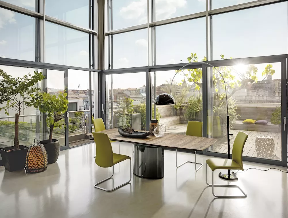 DRAENERT ATLAS Esstisch Massivholz • ATLAS Der Esstisch ATLAS präsentiert sich als ein vergrößerbarer, rechteckiger Esstisch aus Massivholz, der durch seine moderne Strenge überzeugt. Der Auszugsmechanismus gewährleistet, dass die Symmetrie von Tischplatte zum Unterbau sowohl im ausgezogenen als auch im eingeschwenkten Zustand erhalten bleibt. Die neu integrierte Technik geht einen Schritt weiter, indem die Schwenkplatte um weitere 90 ° gedreht werden kann. Dadurch liegt sie unter der Hauptplatte und ist von der Seite nicht mehr sichtbar, was dem Tisch ein raffiniertes und ästhetisches Erscheinungsbild verleiht. Der ATLAS Esstisch vereint somit nicht nur praktische Funktionalität, sondern auch zeitgemäßes Design mit einer subtilen Note von Eleganz, besonders durch die Verwendung von hochwertigem Massivholz.Bei genauen Farbabstimmungen bitte ein Originalmuster des Einrichtungshauses zu Grunde legen.ausziehbar rechteckigfür den Innenbereich geeignetmit integrierter, drehbarer SchwenkplattePlatten quer verleimtSockelgröße: 40 x 1,5 cmSockel: Aluminium matt gebürstet, Wangen geradeSockel aus Aluminium mit gekanteten Wangen auf Anfrage erhältlich. Weitere Informationen finden Sie hier:Materialübersicht HolzHolzauswahlBitte beachten Sie, dass die angezeigten Bilder Illustrationszwecken dienen und von dem tatsächlichen Endprodukt abweichen können.VORSICHT beim Aufstellen von Holztischen auf einer Fußbodenheizung oder in ständiger intensiver Sonneneinstrahlung (Wintergarten). Farbliche Veränderungen sind gegebenenfalls möglich.Design Georg Appeltshauser 2006/ 2014/ 2018