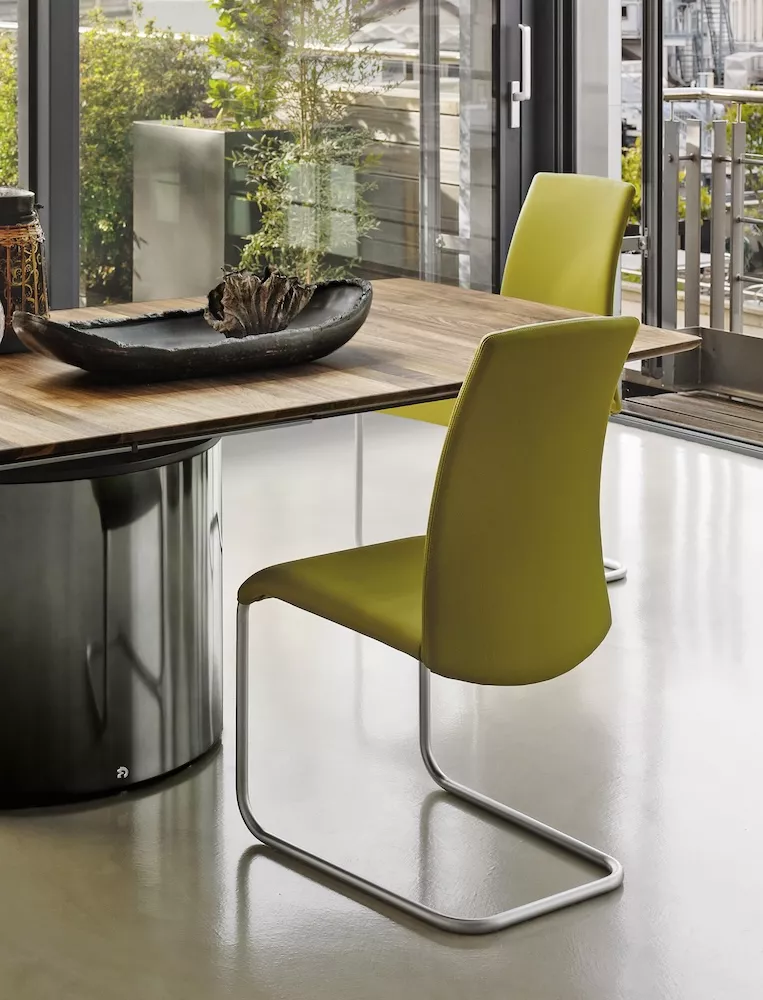 DRAENERT DEXTER Stuhl Leder/Stoff • DEXTER DEXTER zeigt sich von verschiedenen Seiten. Die konisch zulaufenden Stahlbeine verleihen dem Gestell eine grazile Anmutung, während gleichzeitig eine außerordentliche Stabilität gewährleistet ist. Zwei neue Sockeloptionen erweitern die Serie zusätzlich. Darüber hinaus besteht die Möglichkeit, Sitzschale und Rücken in verschiedenen Farben oder Materialien zu kombinieren – sei es in Leder, Stoff oder einem harmonischen Leder-/Stoff-Mix. Diese variantenreichen Gestaltungsoptionen ermöglichen es, DEXTER perfekt an individuelle Vorlieben und den gewünschten Einrichtungsstil anzupassen. Entdecken Sie die Vielseitigkeit und Ausdruckskraft von DEXTER. Stuhl ohne Armlehne mit FaltenwurfGestell: Stahl beschichtet schwarz mit PVC-Gleitern oder FilzgleiternMaximale Belastung: 150 kgGewicht: 8 kgSitzhöhe: 48,5 cm Sitztiefe: 47 cmBezug aus Leder und Stoff (Kombination) auf Anfrage erhältlich.Maße (B x T x H) 51 x 67 x 88,5 cm Weitere Informationen finden Sie hier:Materialinformationen LederMaterialinformationen StoffWeitere Informationen LederWeitere Informationen StoffBitte beachten Sie, dass die angezeigten Bilder Illustrationszwecken dienen und von dem tatsächlichen Endprodukt abweichen können. Design Gino Carollo 2018