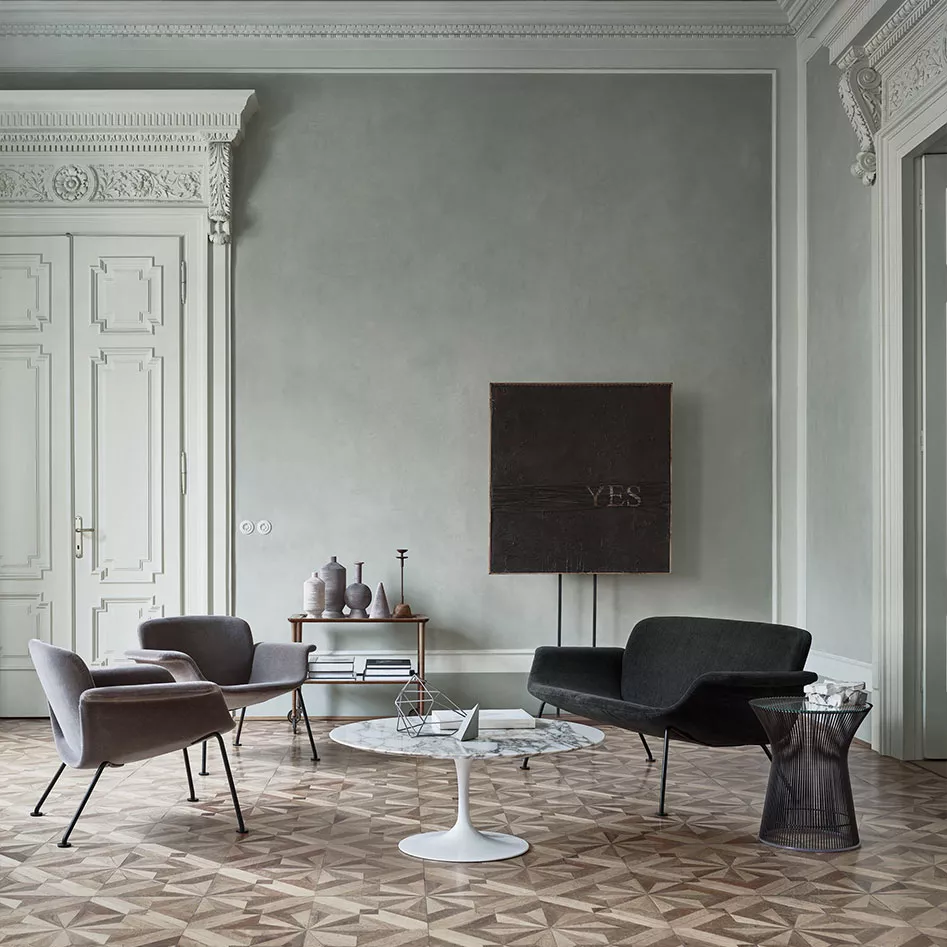 - Gestell: Originaldesign von Saarinen. Schwerer Aluminiumformguss. Schwarze und weiße Säulenfüße sind mit Rilsan geschützt.