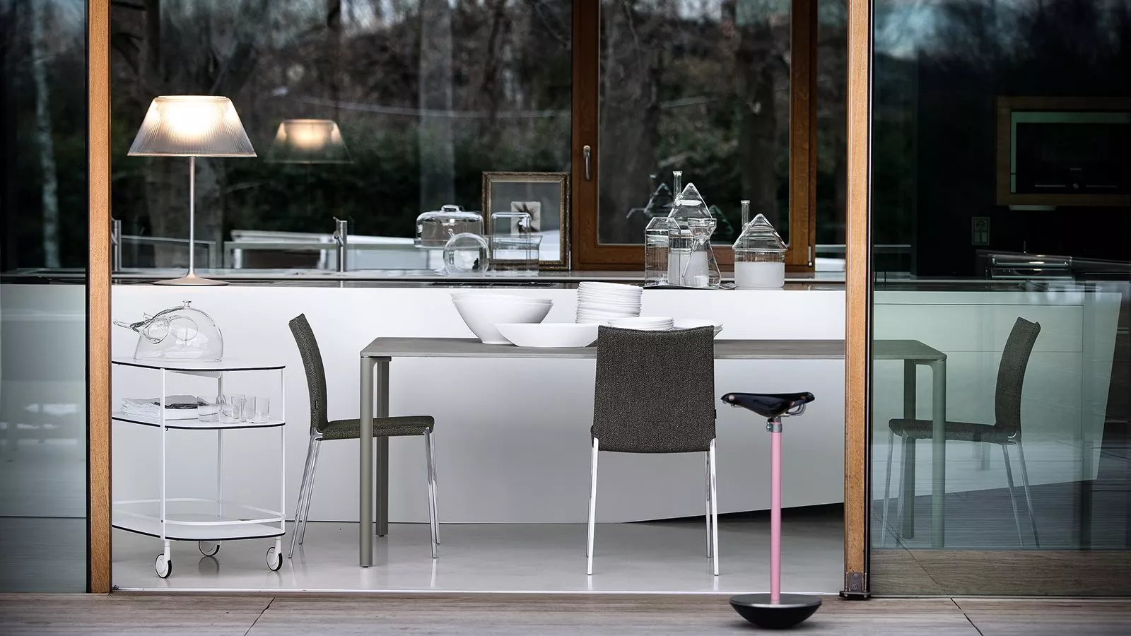- Gestell aus polierter Aluminiumlegierung oder Graphit, schwarz oder weiß lackiert