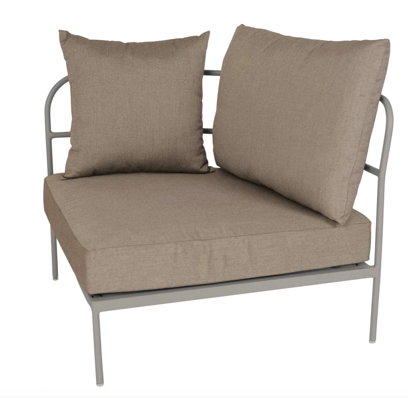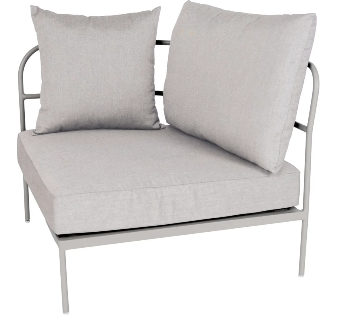 Stern COCO Lounge • verschiedene Größen und Farben Die Lounge COCO erweitert das beliebte Outdoor-Thema Aluminium in Kombination mit Textilien. In der neuen Trendfarbe Greige – einer Mischung aus Grau und Beige – wird sie zum echten Blickfang. Das modulare System umfasst ein Eckelement, ein Mittelelement sowie einen Hocker und bietet Ihnen maximale Freiheit bei der individuellen Gestaltung Perfekt für Garten, Terrasse oder Balkon! ProdukteigenschaftenAuflage: Abnehmbar & waschbar, 100% Polyacryl Alle Sitz- und Rückenkissen verfügen über einen ReißverschlussGestell: AluminiumMaße Eckmodul: L: 88 cm x B: 88 cm x H: 84 cm, Sitzhöhe: 39 cm mit Kissen, Gewicht: 10,8 kgMaße Mittelmodul: L: 88cm x B: 82 cm x H: 84cm, Sitzhöhe: 39 cm mit Kissen, Gewicht: 10,4 kgSchutzhülle für 2x Eckmodul und 1x Mittelmodul ist auf Anfrage und Aufpreis erhältlich. Stoffe: 5 Jahresgarantie bei Lichtechtheit Design: Kümmel