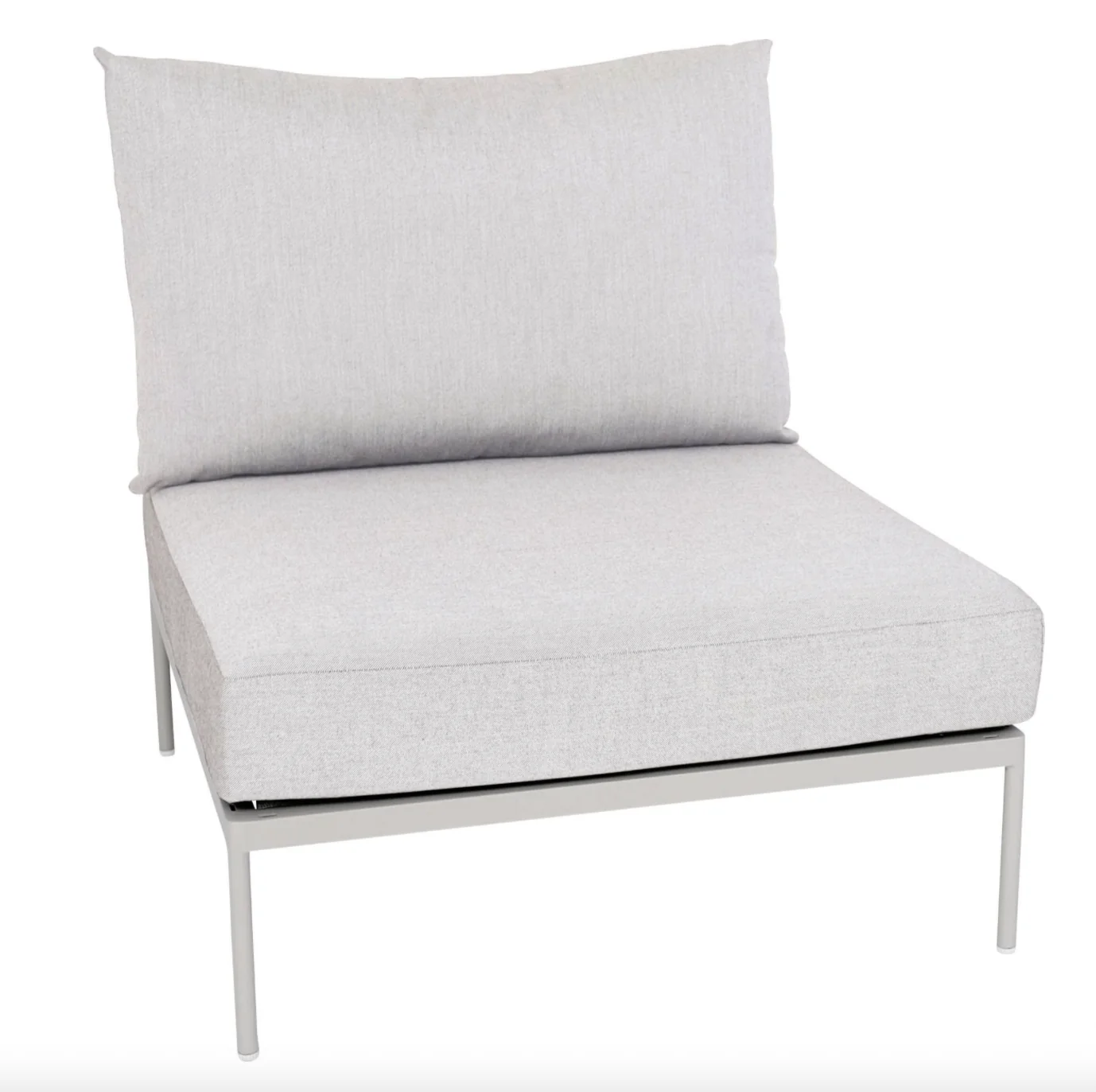 Stern FONTANA Mittelelement Das Fontana Mittelelement von Stern verbindet zeitlose Eleganz mit herausragendem Sitzkomfort. Sein hochwertiger Aluminium-Korpus in Kombination mit dem edlen Geflecht verleiht ihm eine exklusive Optik. Das weiche Kissenset sorgt für eine gemütliche Lounge-Atmosphäre – ideal für Garten, Terrasse oder Wintergarten. Produkteigenschaften Gestell: Aluminium Sitzfläche: Kordel (100% Polypropylen), Farbe Vintage weiß, basaltgrau oder zimt Auflage: Seidengrau oder rehbraun beim Gestell Zimt, 100% Polyacryl, abnehmbar & waschbar Maße: B87 × T87 × H59 cmMaße Untergestell: 85 x 85 x 14 cmKorpus Sitzhöhe mit Kissen: 26 cm Gewicht: 4,5 kg