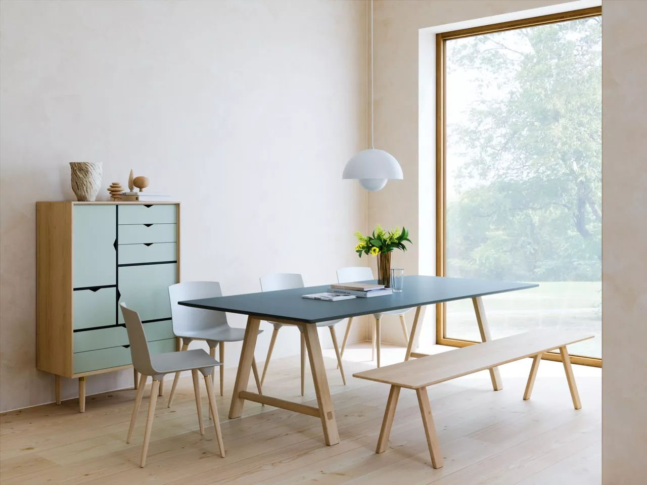 ANDERSEN T3 Ausziehtisch Der T3-Tisch wurde durch den Wunsch inspiriert, einen klassischen Esstisch mit hochfunktionalen Details zu schaffen. Der T3 verfügt über ein synchronisiertes Ausziehsystem für eine einfache Handhabung. Man kann den Tisch problemlos alleine ausziehen. Ziehen Sie einfach an einem Ende, und beide Hälften des Tisches gleiten auseinander. Wenn die Tischplatte erweitert ist, bleiben die Tischbeine an derselben Stelle. Der T3 ist in einer Version mit einer Tischplatte aus dem beliebten Fenix-Laminat Grigo Londra und einem massiven Eichensockel erhältlich, der weiß pigmentiert oder mit Öl behandelt ist, was dem Tisch eine natürliche Ausstrahlung verleiht. Ausziehtischinkl. Klappauszug (100 cm)Tisch aus Eiche (weiß pigmentiert oder geölt)Kantleiste aus Eiche MassivholzDesigner: byKATOSitzplätze: 6 - 8 PersonenGewicht: 75 kgMaße: 95 x 200 x 74 cm
