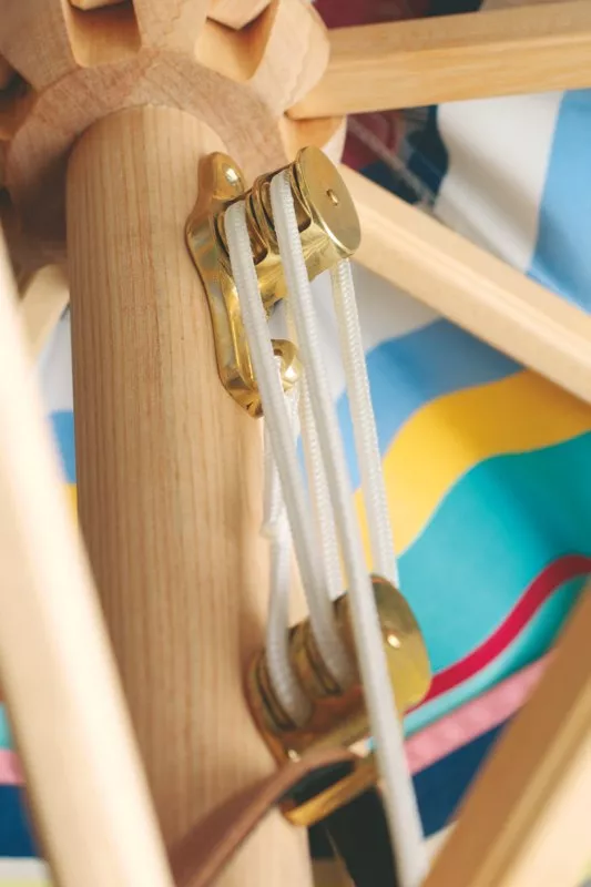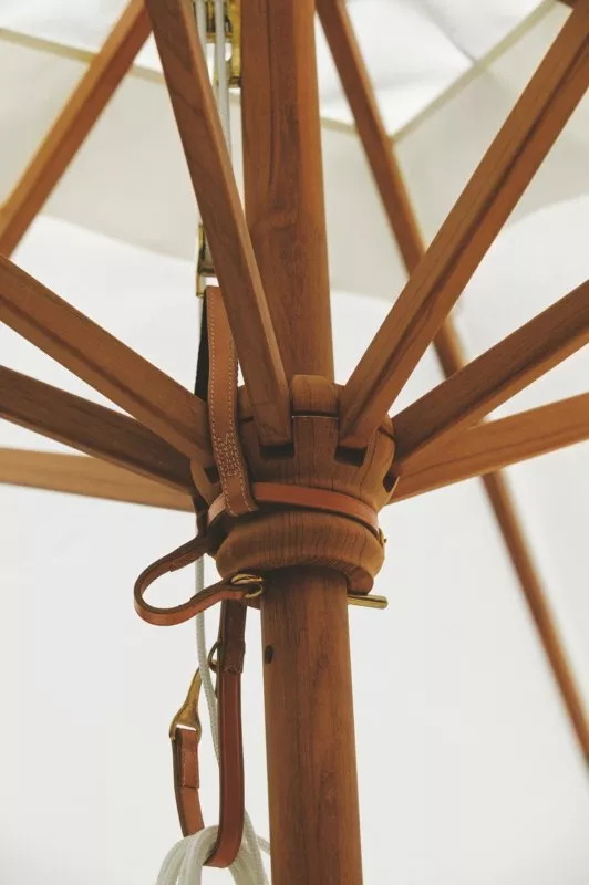 Das Gestell der Schirme wird ausschließlich aus Holz gefertigt und ist oberflächenimprägniert. Mit Schirmbespannung aus hochwertigem Acryltuch (100% Acrylgewebe). Diese Gewebe sind wasserabweisend und fäulnishemmend imprägniert. Eine absolute Wasserundurchlässigkeit bei anhaltendem Regen ist jedoch nicht gewährleistet. Alle Bespannungen werden generell mit einer sogenannten Lufthaube gefertigt.