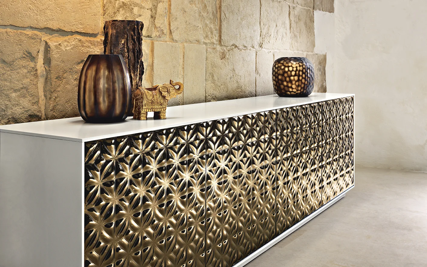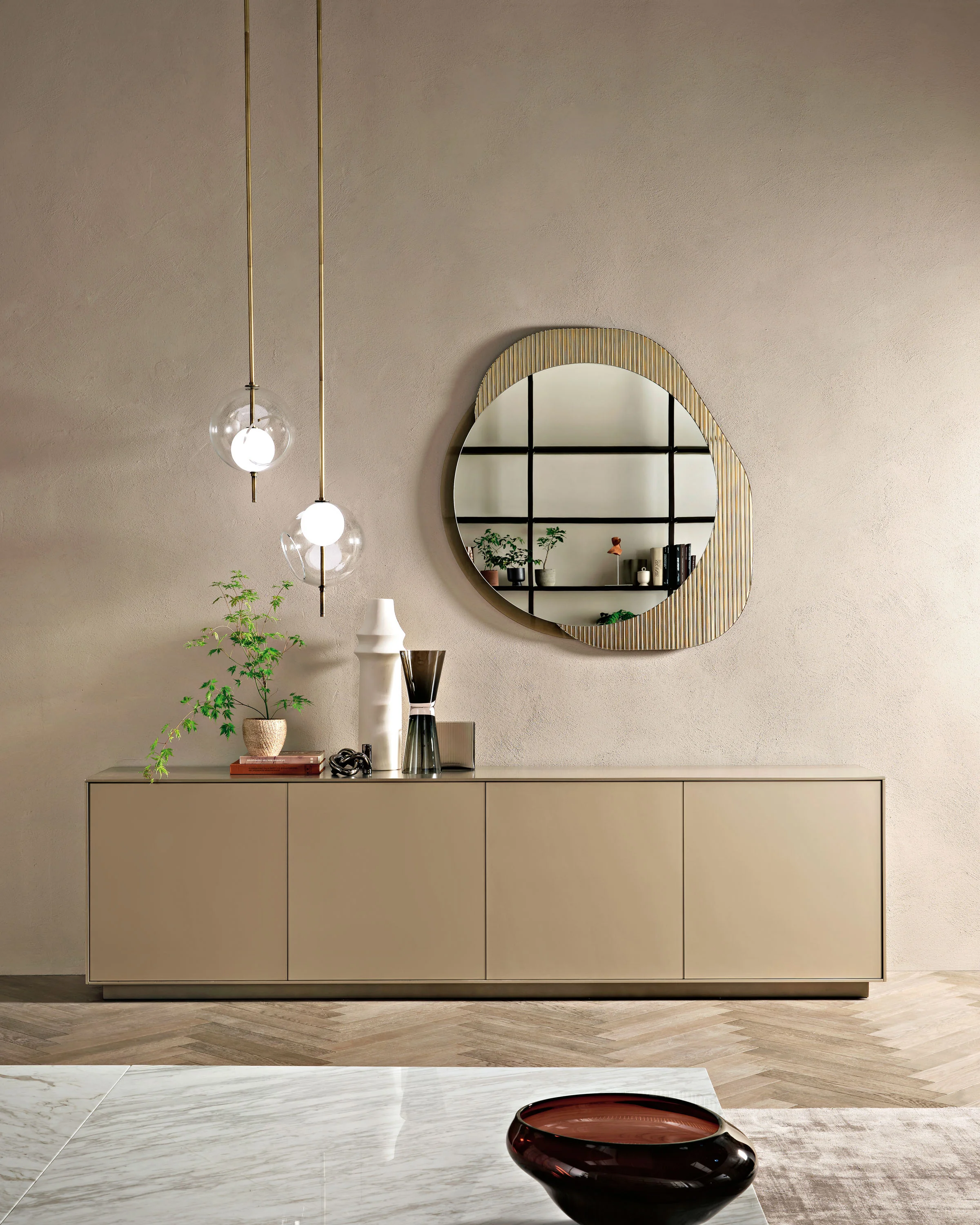 FIAM ECHO Sideboard • verschiedene Größen Interessieren Sie sich für das Sideboard in einer anderen Ausführung? Unser Kundenservice hilft Ihnen gerne weiter und berät Sie persönlich – wir freuen uns auf Ihre Anfrage!ECHO Sideboard – Design von MARCEL WANDERSEin elegantes Statement für stilbewusstes Wohnen: Das Echo Sideboard vereint klare Linien mit raffinierten Materialien und hochwertiger Verarbeitung. Die Struktur besteht aus lackiertem Holz und ist in drei edlen Farbvarianten erhältlich MattweißVulkangrauMetallic-GrauDie Türen aus 6 mm starkem, gehärtetem Glas bieten wahlweise eine glatte oder kunstvoll verschmolzene Oberfläche. Sie sind in verschiedenen Ausführungen erhältlich: Extralight-Glas in Weiß oder Vulkangrau lackiert Geätztes Extralight-Glas in Weiß oder ChampagnerVersilbertes Extralight-GlasVersilbertes Bronzeglas Im Inneren sorgen Fachböden aus 8 mm gehärtetem Rauchglas für stilvolle Ordnung und bieten großzügigen Stauraum. Ein Möbelstück, das Funktion und Design auf höchstem Niveau verbindet.