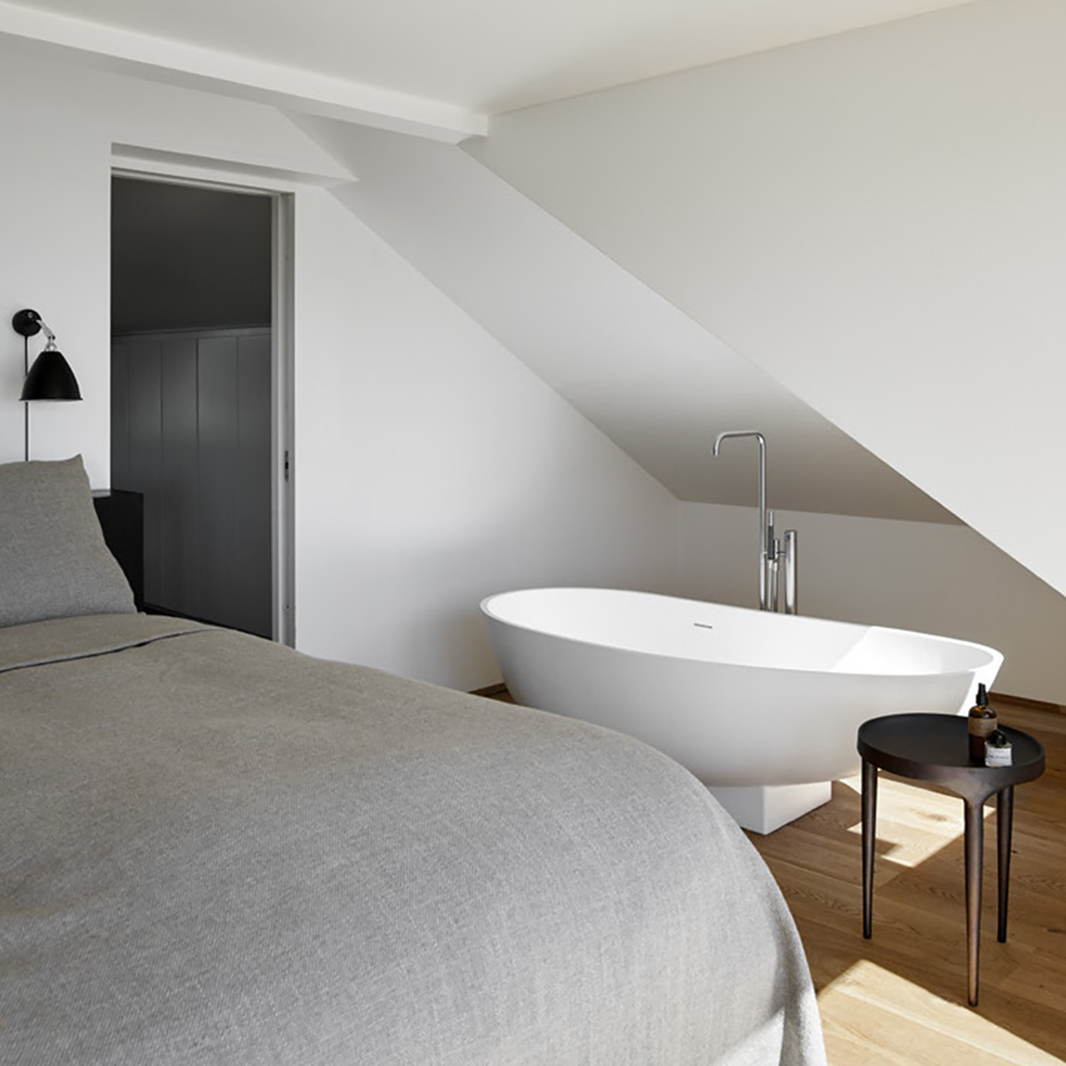 101 COPENHAGEN BOW Wandleuchte bronze · 2 GrößenBOW von 101 Copenhagen – Minimalistische LED-Wandleuchte in eleganter Bogenform Die Bow Wall Lamp bzw. Bow Wandleuchte von 101 Copenhagen vereint elegante Formen mit skulpturaler Leichtigkeit. Inspiriert vom geschwungenen Bogen einer klassischen Armbrust, zieht sie mit ihrer sanften Kurve und der schlichten Silhouette sofort die Blicke auf sich. Das warmweiße Licht der integrierten LED wird durch ein weißes Acrylrohr sanft gestreut und schafft eine einladende, wohnliche Atmosphäre. Gefasst wird der leuchtende Bogen von einer dezenten Wandhalterung aus edel bronziertem Metall, die spannende Kontraste zwischen filigraner Leichtigkeit und architektonischer Klarheit erzeugt. Die Bow Wall Lamp ist in zwei Größen erhältlich – Mini (50 cm Höhe) und Big (100 cm Höhe). Dadurch kann sie flexibel in unterschiedlichen Räumen eingesetzt werden: als dezentes Einzelstück, als grafisches Paar neben dem Bett oder als markanter Blickfang in Fluren und Wohnbereichen. Jede Leuchte ist mit einem integrierten Dimmer-Treiber ausgestattet und kann über ein geeignetes Dimmersystem stufenlos in der Helligkeit angepasst werden. Designed von Kristian Sofus Hansen & Tommy Hyldahl. Diese Wandleuchte ist in zwei Größen erhältlich: Bow Wall Lamp Mini: L 15,5 × B 10 × H 50 cm, Gewicht ca. 1,1 kg Bow Wall Lamp Big: L 18 × B 14 × H 100 cm, Gewicht ca. 1,9 kg Beide Bow-Varianten sind mit einem schwarzen, stoffummantelten Textilkabel und einer verdeckt montierten Wandhalterung ausgestattet. Damit eignen sie sich ideal für den Einsatz in Wohn- und Schlafzimmern, Fluren, Galerien oder stilvollen Hotellobbys. Die Leuchten sind CE-, UKCA- und EMC-zertifiziert, für Raumhöhen von 230–320 cm konzipiert und werden anschlussfertig mit integriertem LED-Treiber geliefert. Mit ihrer skulpturalen Bogenform, der Auswahl zwischen zwei Größen und der dimmbaren, warmen LED-Lichtqualität ist die Bow Wall Lamp ein vielseitiges Design-Highlight für individuelle Lichtkonzepte. Ob als ästhetische Akzentbeleuchtung im Wohnzimmer, als stimmungsvolle Wandbeleuchtung im Schlafzimmer oder als repräsentative Lichtskulptur in Fluren, Galerien und Hotellobbys – Bow setzt elegante Lichtakzente und schafft eine harmonische, einladende Atmosphäre. Technische Details (beide Größen)Material: bronziertes Metall, weißes AcrylKabel: Textilummanteltes Kabel, 2 Meter lang, schwarzLichtquelle: integrierte LED, 25.000 h Lebensdauer, 2400 K warmweiß, max. 25 W Dimmfunktion: Nur über externes DimmersystemGewicht: ca. 1,9 kg Bow Wandleuchte Big bzw. 1,1 kg Bow Wandleuchte MiniFarbe/Finish: ChromeMaße (L × B × H) : 18 x 14 x 100 cm (Bow Wandlampe Big) bzw. 15,5 x 10 x 50 cm (Bow Wandlampe Mini) Bitte beachten Sie, dass die angezeigten Bilder Illustrationszwecken dienen und von dem tatsächlichen Endprodukt abweichen können.