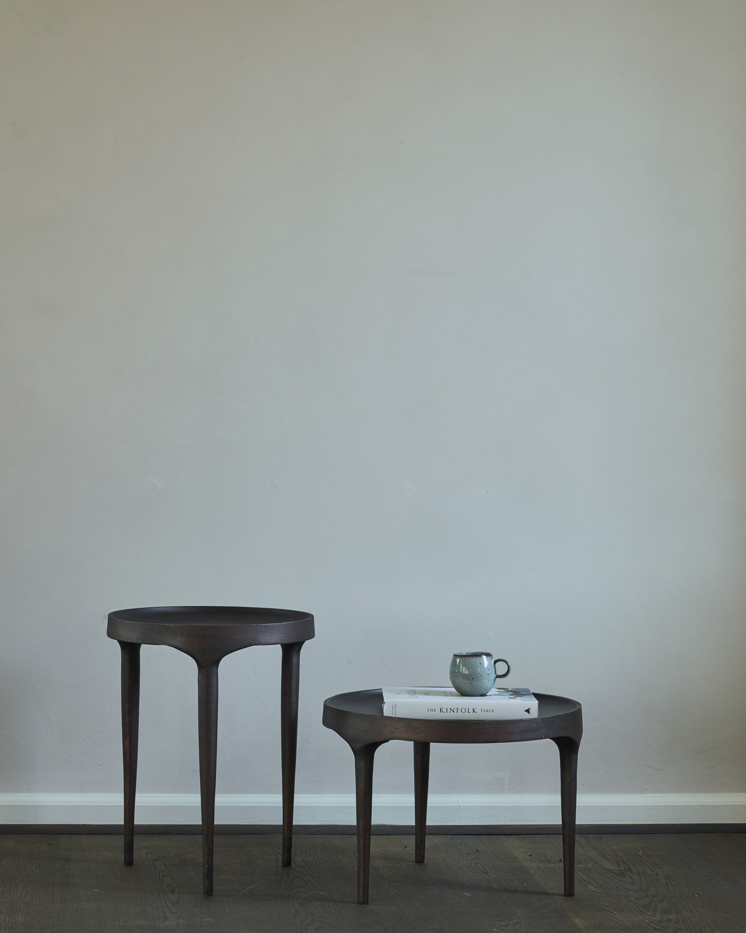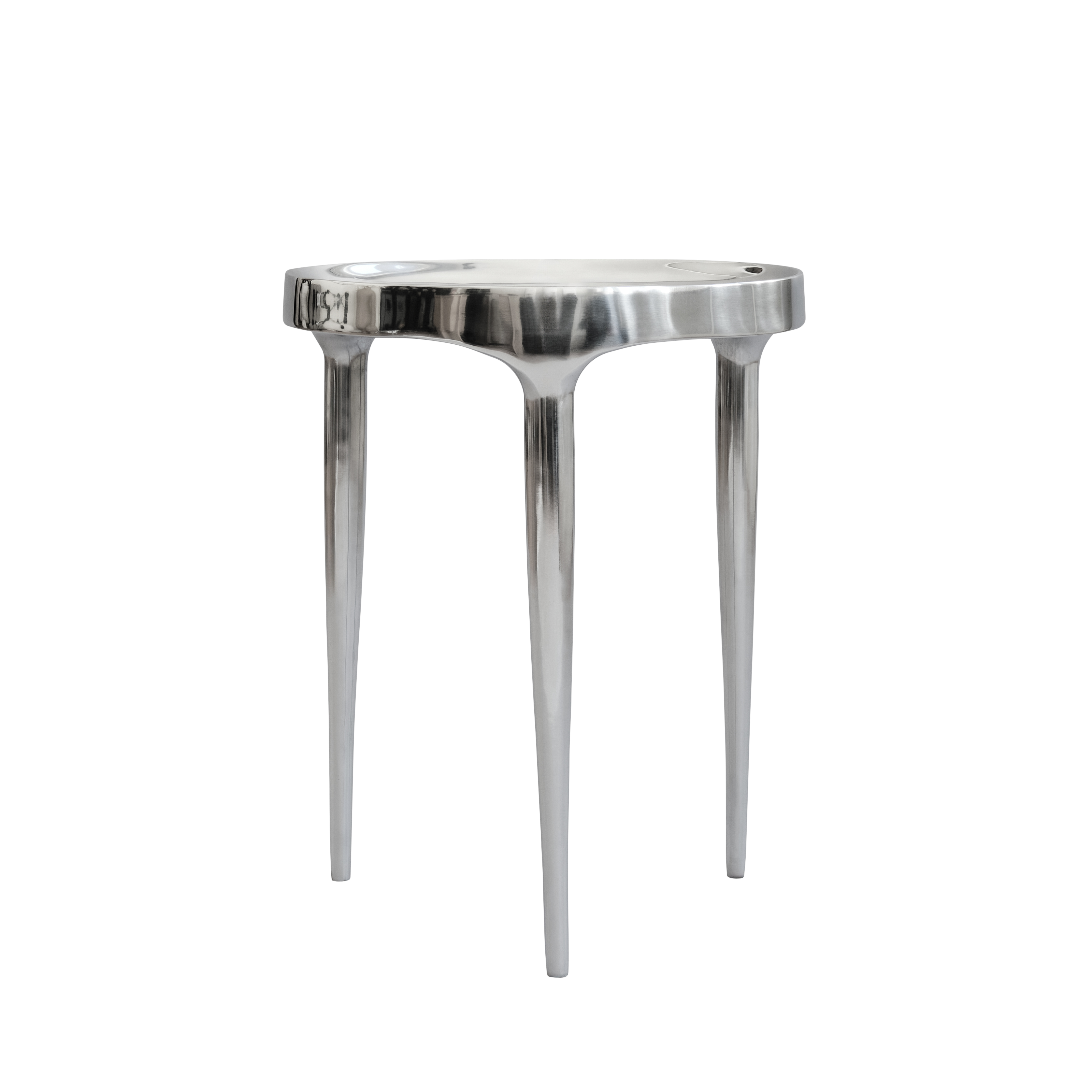 Erhältlich in zwei Höhen (hoch & niedrig) und drei ausdrucksstarken Oberflächen (Burn Antique, Chrome, Birch), passt sich der Tisch unterschiedlichsten Interieurs an – von modern-minimalistisch bis künstlerisch-expressiv.