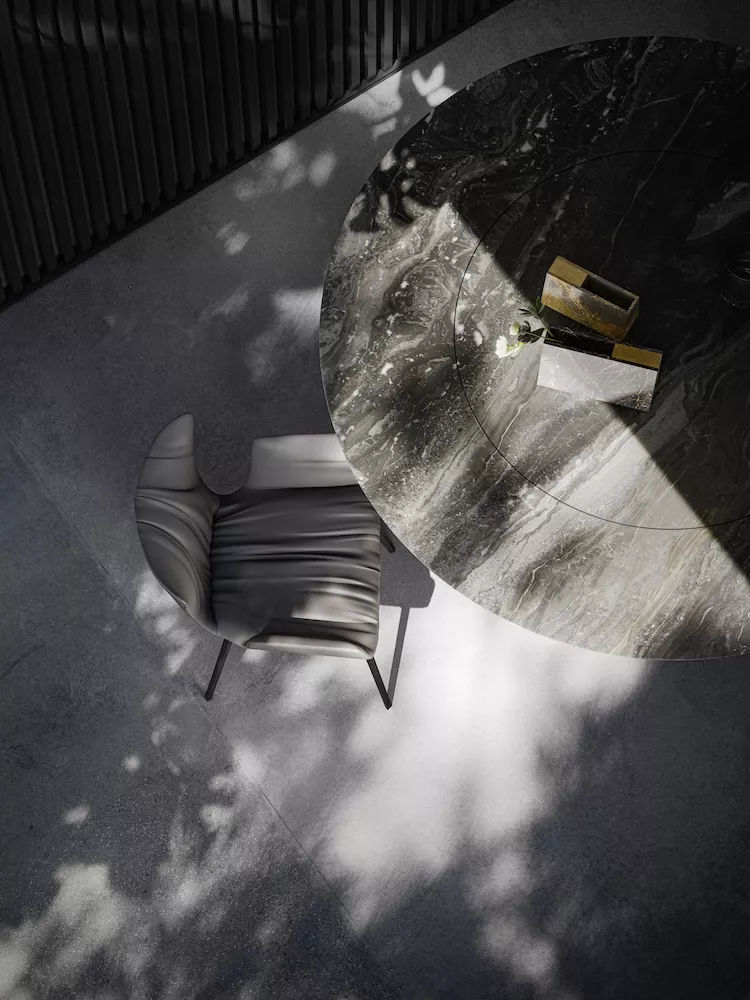 DRAENERT ATLAS Esstisch Naturstein • ATLAS Der Esstisch ATLAS präsentiert sich als ein vergrößerbarer, rechteckiger Esstisch aus Naturstein, der durch seine moderne Strenge überzeugt. Der Auszugsmechanismus gewährleistet, dass die Symmetrie von Tischplatte zum Unterbau sowohl im ausgezogenen als auch im eingeschwenkten Zustand erhalten bleibt. Die neu integrierte Technik geht einen Schritt weiter, indem die Schwenkplatte um weitere 90 ° gedreht werden kann. Dadurch liegt sie unter der Hauptplatte und ist von der Seite nicht mehr sichtbar, was dem Tisch ein raffiniertes und ästhetisches Erscheinungsbild verleiht. Der ATLAS Esstisch vereint somit nicht nur praktische Funktionalität, sondern auch zeitgemäßes Design mit einer subtilen Note von Eleganz, besonders durch die Verwendung von hochwertigem Naturstein.Als Fleckprophylaxe werden bei DRAENERT alle Steine mit einer speziellen Öl-Wachs-Emulsion eingelassen. Diese verzögert ein schnelles Eindringen der Flüssigkeit, so dass genügend Zeit zum Abwischen vorhanden ist. Zur Säuberung genügt ein feuchtes Tuch. Eine regelmäßige Nachpflege mit dem DRAENERT Steinpflege-Set wird empfohlen. Bitte geben Sie bei Ihrer Bestellung an, ob es sich um die Outdoor-Variante handelt. Bei genauen Farbabstimmungen bitte ein Originalmuster des Einrichtungshauses zu Grunde legen.ausziehbar rechteckigmit integrierter, drehbarer SchwenkplatteSockelgröße: 40 x 1,5 cmSockel: Aluminium matt gebürstet, Wangen geradeSockel aus Aluminium mit gekanteten Wangen auf Anfrage erhältlich. Weitere Informationen finden Sie hier:Übersicht NatursteinweltenWeitere Informationen SteinauswahlBitte beachten Sie, dass die angezeigten Bilder Illustrationszwecken dienen und von dem tatsächlichen Endprodukt abweichen können.Design Georg Appeltshauser 2006/ 2014/ 2018