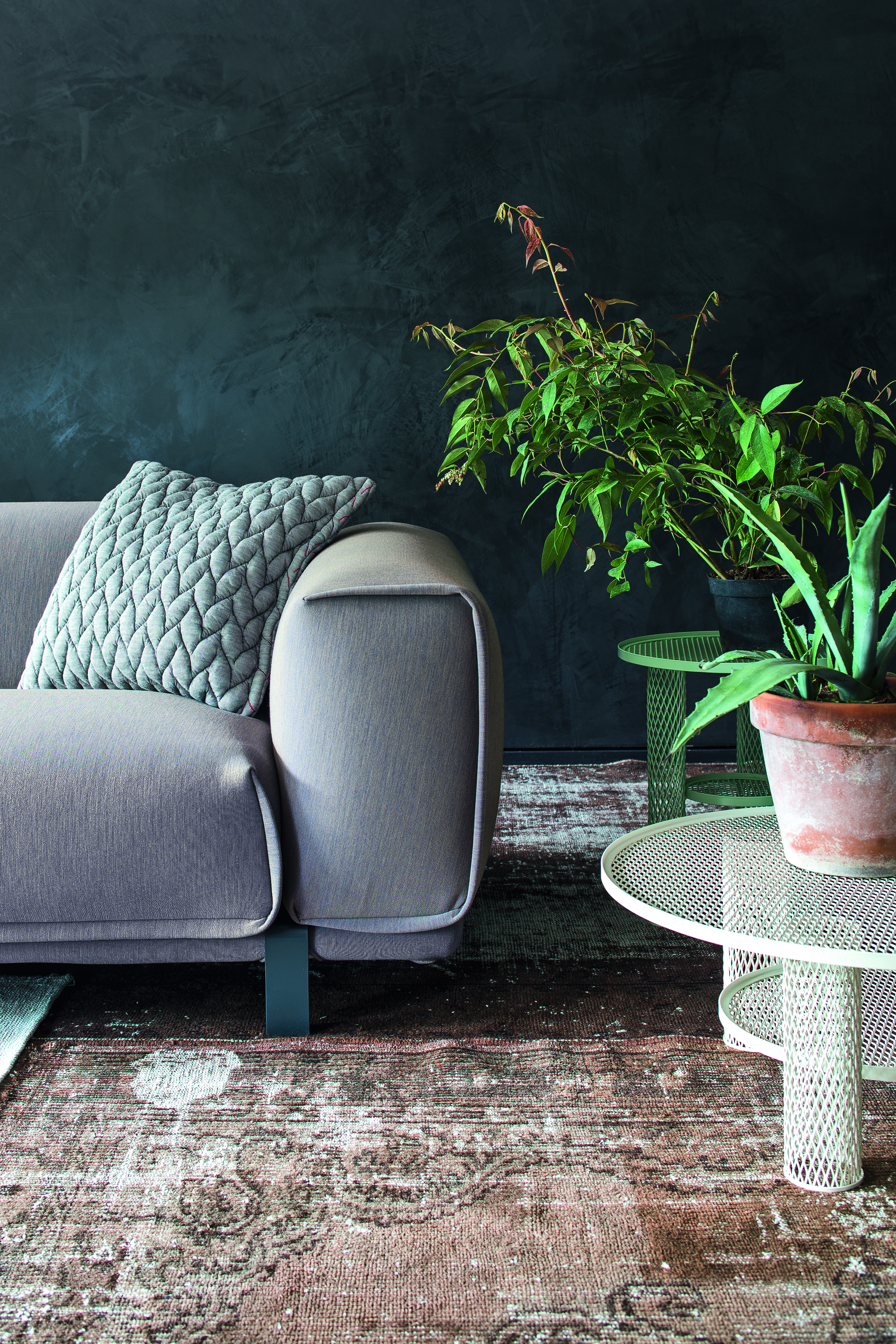 MOROSO GOGAN Sofa • Zusammenstellung 284 cmFließende Eleganz und zeitlose Ruhe – die Kollektion Gogan von Patricia Urquiola für Moroso Sanft geschwungene Linien, wie von Wind und Wasser geformt – die Kollektion Gogan vereint natürliche Harmonie mit modernem Design. Ihren Namen verdankt sie den japanischen Steinen, die an Flussufern und Seen liegen: vom Wasser geglättet, vom Lauf der Zeit gezeichnet und dennoch kraftvoll in ihrer Ruhe. Die Formen von Sofa und Sessel erinnern an diese Steine – massiv und zugleich weich, als würden sie Sie einladen, sich entspannt zurückzulehnen. Gogan spielt mit Gegensätzen: Schwere wirkt leicht, Stabilität trifft auf Eleganz, Natürlichkeit auf höchsten Komfort. Weiche, organische Sitzflächen mit leicht nach hinten geneigter Form sorgen für ein besonders angenehmes Sitzgefühl. Die dezent geneigte Rückenlehne bietet Halt, ohne dominant zu wirken. Filigrane Verbindungselemente zwischen Sitz und Rücken verleihen der Kollektion eine schwebende Leichtigkeit – ein Zusammenspiel von Balance, Design und Komfort, das inspiriert und beruhigt zugleich. Gerne bieten wir Ihnen auf Anfrage eine Auswahl weiterer Stoffe an. Kontaktieren Sie uns telefonisch oder per E-Mail – unser Team berät Sie individuell und kompetent.Gestell / Struktur: Elemente aus PU-Schaum, in unterschiedlicher Dichte und Polyesterwatte, Innenstruktur aus Holz. Standardmäßig Polyurethan in der Version gemäß CAL TB117, frei von Flammschutzmitteln. Füße aus schwarzem Polypropylen, an der Struktur verschraubt. Die Gogan-Kollektion ist abziehbar, mit Ausnahme der Bezüge aus Leder und Vinyl. Lose Kissen sind im Preis nicht eingeschlossen.Sitztiefe: 65 / 127 cmSitzhöhe: 44 cmNetto-Gewicht: 190 kgMaße (B × T × H) : 284 x 170 x 70 cm Bitte beachten Sie, dass die angezeigten Bilder Illustrationszwecken dienen und von dem tatsächlichen Endprodukt abweichen können.