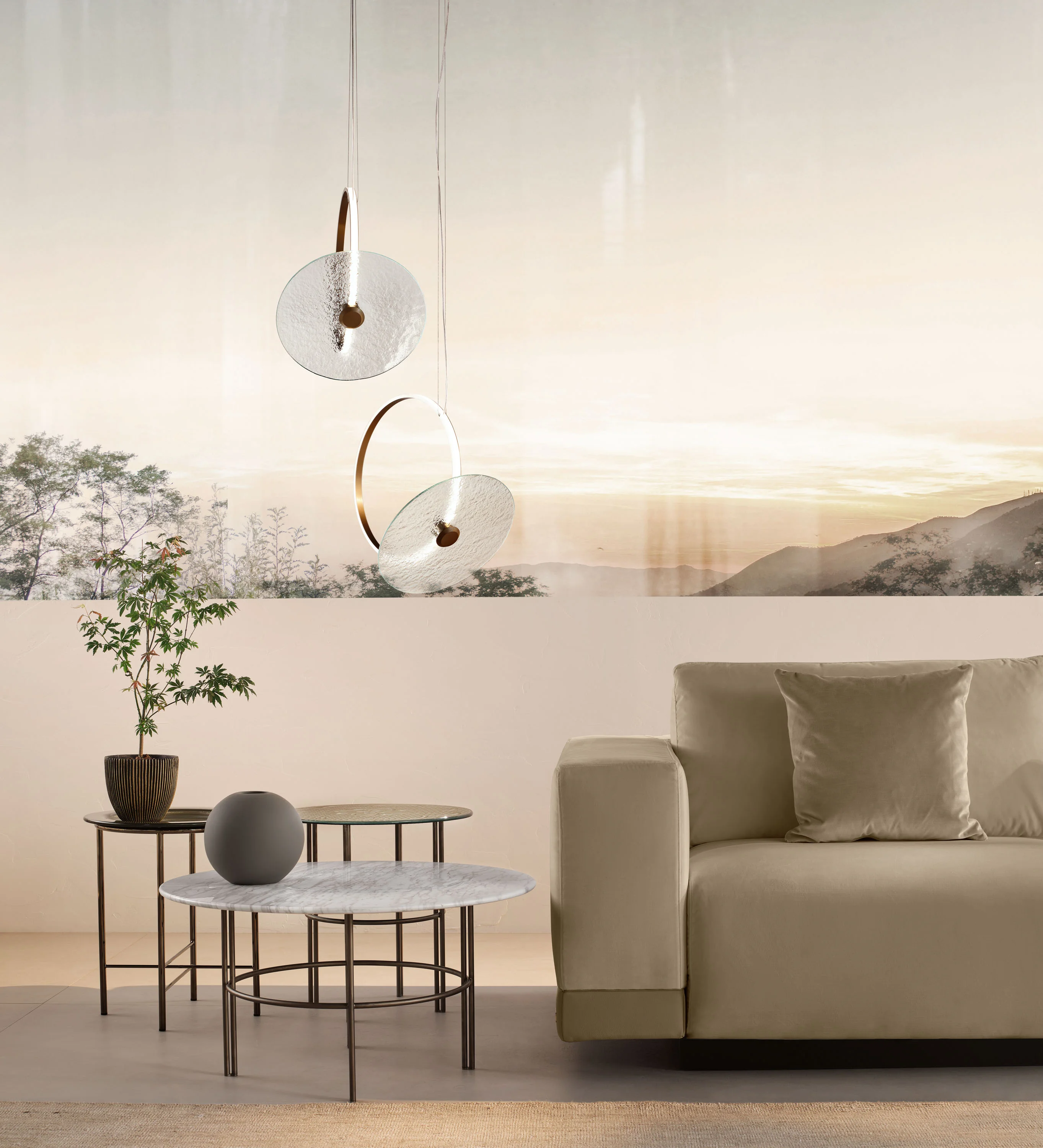 FIAM PEARL Hängeleuchte • Kompositionen aus 4 Elementen PEARL Hängeleuchte – Design von ADELE MARTELLIDie Hängeleuchte Pearl aus dem Hause FIAM vereint zeitloses Design mit edlen Materialien und feinster Handwerkskunst. Ihr filigraner Rahmen aus Metall in eleganter brunierter Messingausführung verleiht ihr eine warme, luxuriöse Ausstrahlung. Im Zentrum stehen zwei mundgeblasene Glaskugeln:Die äußere Kugel aus transparentem Murano-Glas (Ø 30 oder 40 cm) sorgt für eine schwebende LeichtigkeitDie innere Kugel aus weißem Opalglas (Ø 15 cm) dient als Diffusor und verteilt das Licht weich und gleichmäßig im RaumDie integrierte LED-Lichtquelle ist dezent in die Struktur eingearbeitet und sorgt für eine angenehme, energieeffiziente Beleuchtung. Ob als Einzelstück oder in Kombination – Pearl ist ein leuchtendes Designobjekt für stilvolle Innenräume.Leichte Spuren, Oberflächenunregelmäßigkeiten und kleine Luftblasen im Glase sind Merkmale des Blasprozesses, die die Handwerkliche Qualität garantieren. Sie können daher nicht beanstanden werden.
