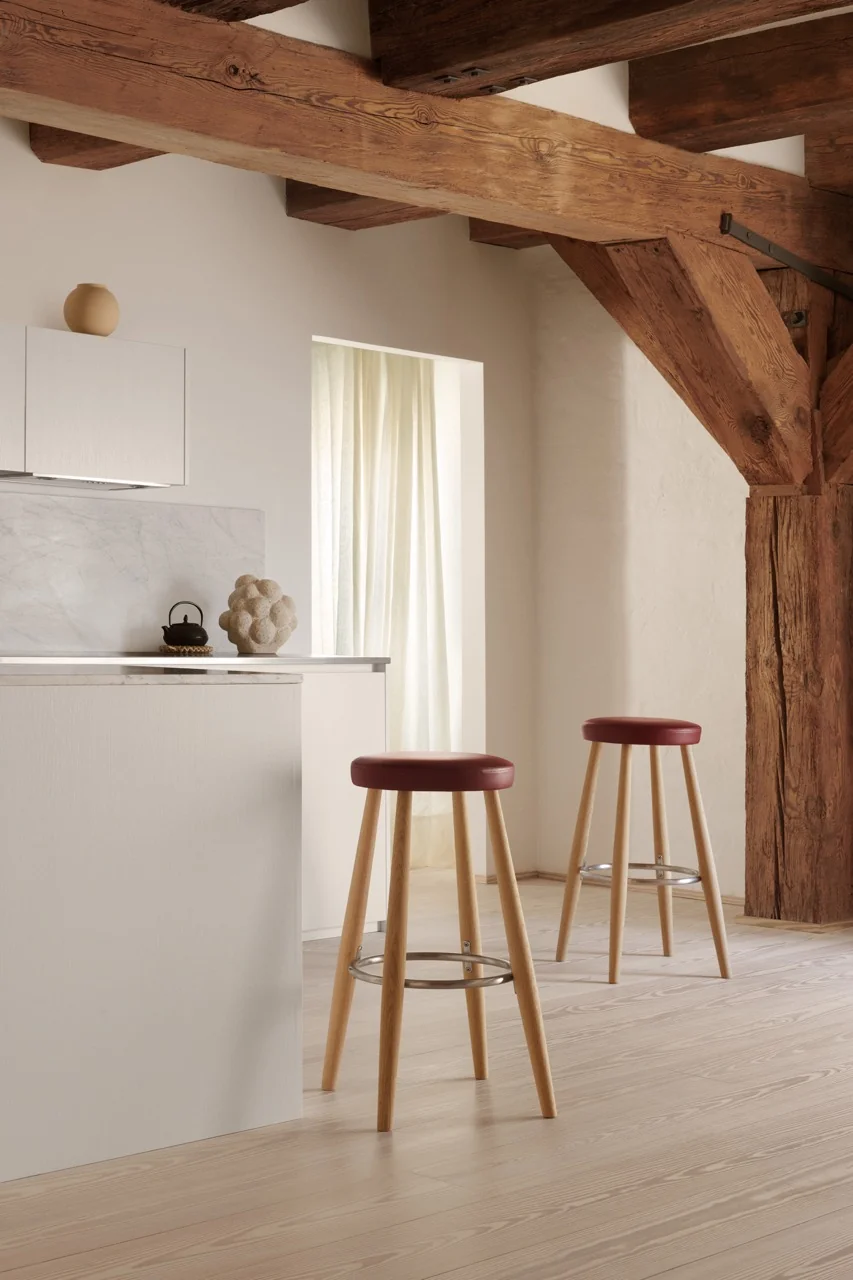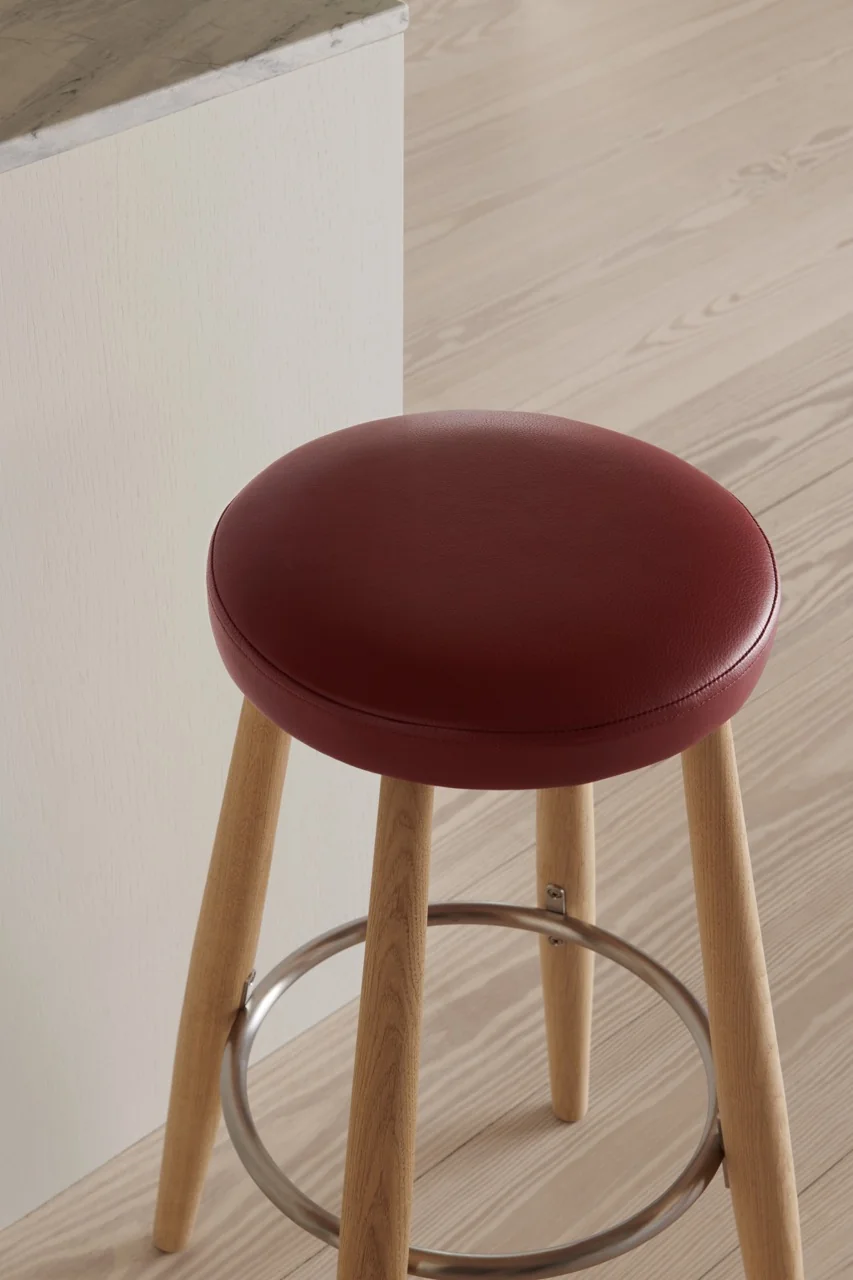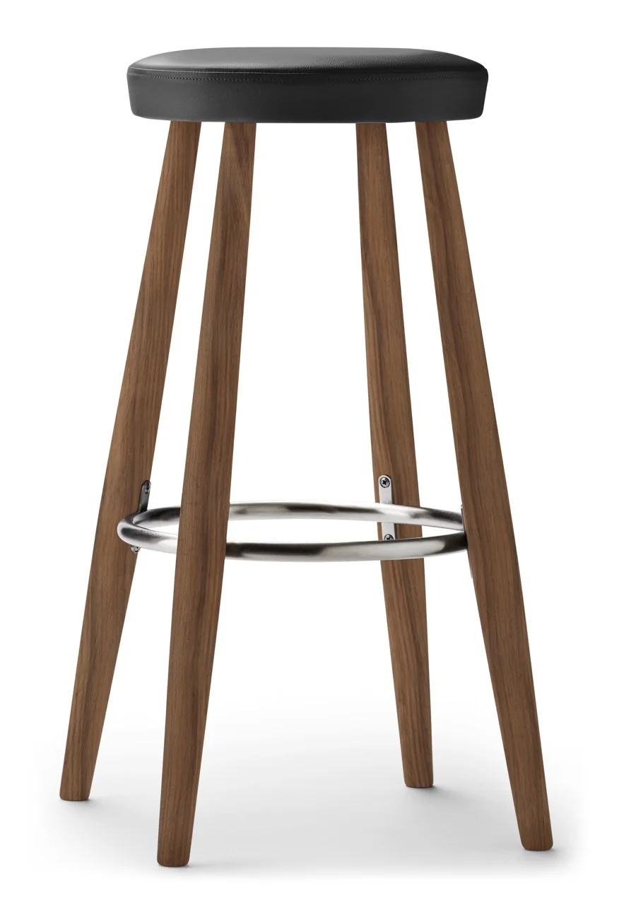 Carl Hansen CH56/CH58 Hocker Die Hocker CH56 und CH58 von Hans J. Wegner vereinen robuste Stabilität mit minimalistischer Eleganz. Beide Modelle verfügen über vier leicht geneigte Beine, die durch einen Edelstahlring verstärkt werden, der gleichzeitig als Fußstütze dient. Der CH56 ist ideal für die Barhöhe, während der etwas niedrigere CH58 perfekt an eine Küchenzeile passt.Materialien: Sitz gepolstert, wählbar aus verschiedenen LedergruppenFußstütze: EdelstahlMontage: Der Stuhl wird vollständig montiert geliefert und ist sofort einsatzbereitDesigner: Hans J. Wegner Gewicht: 5 kgMaße:CH56: H 76 x B 39 x T 35 cmCH58: H 68 x B 36 x T 35 cm