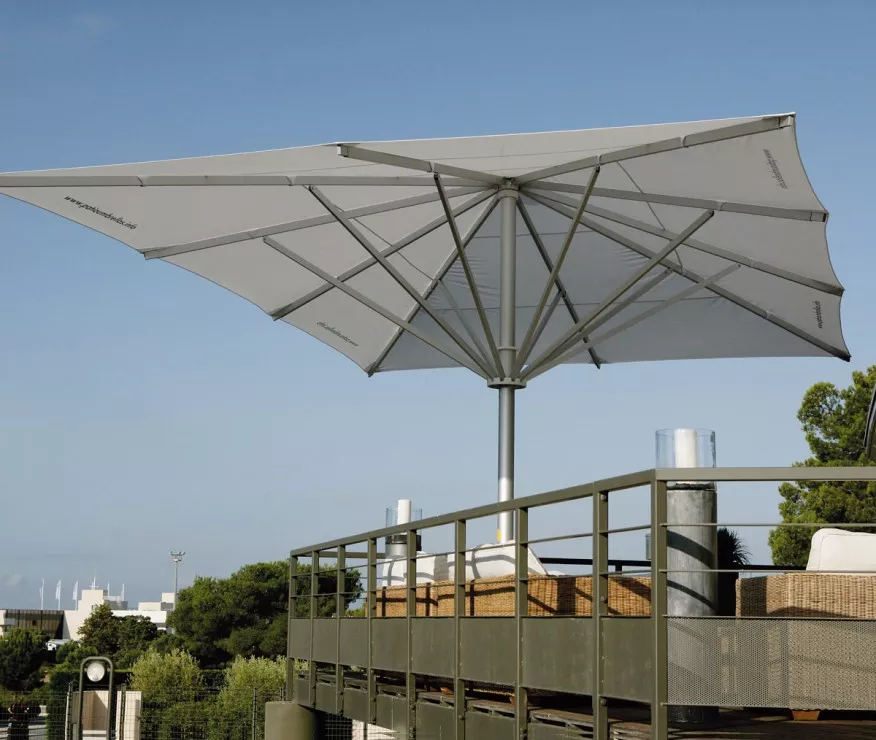 Diese Schirme zeichnen sich durch einen wartungsfreien Antrieb sowie durch eine besonders robuste Konstruktion aus.