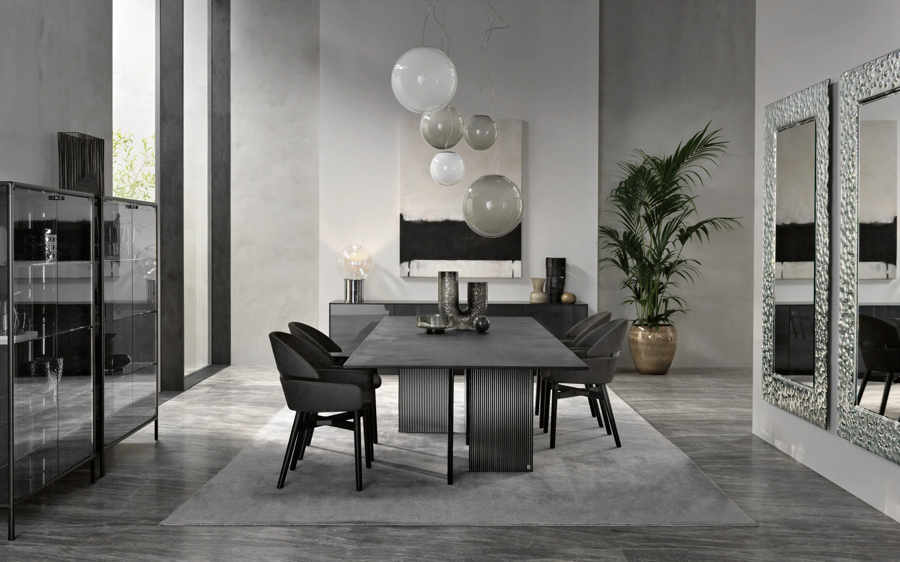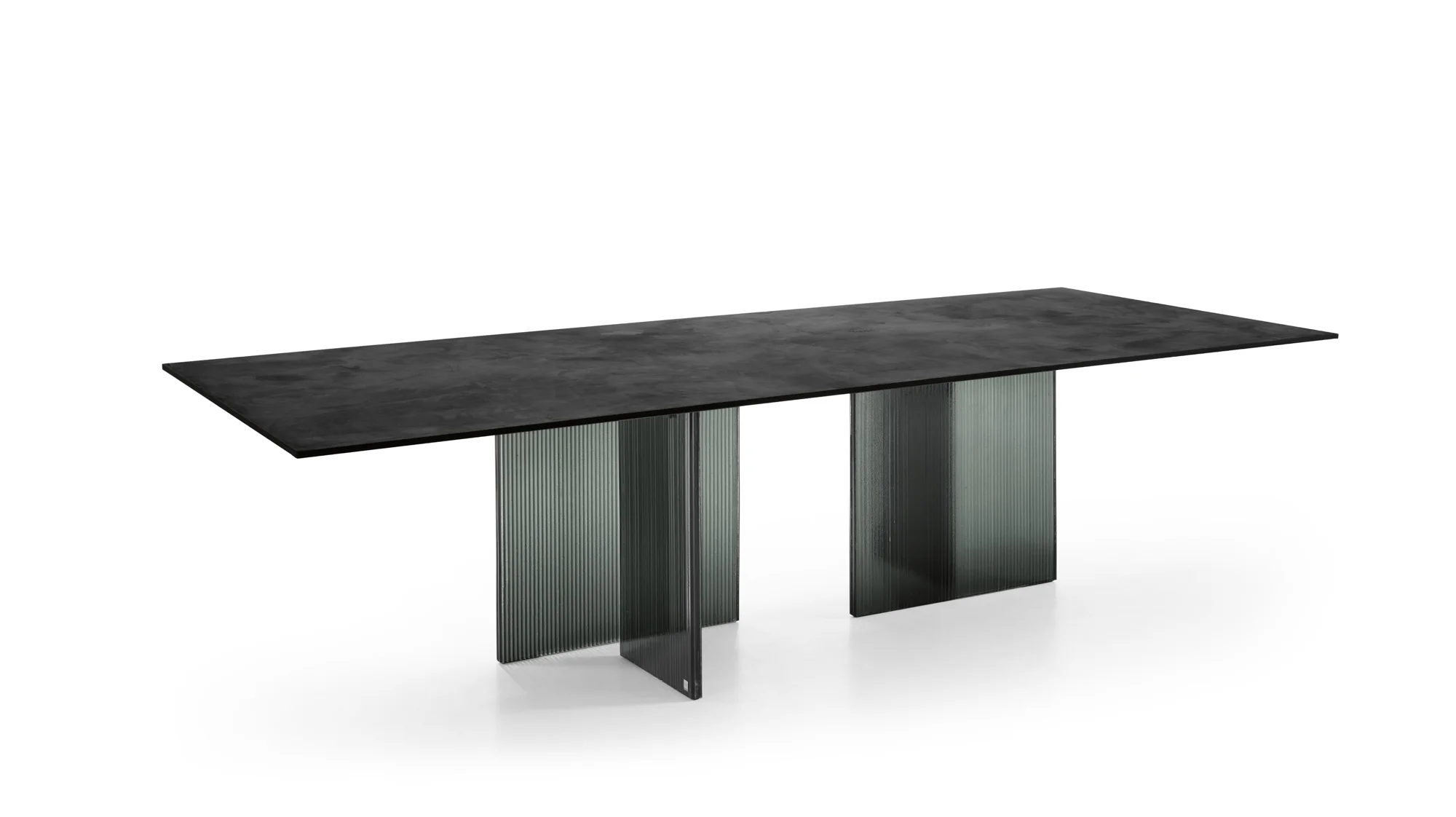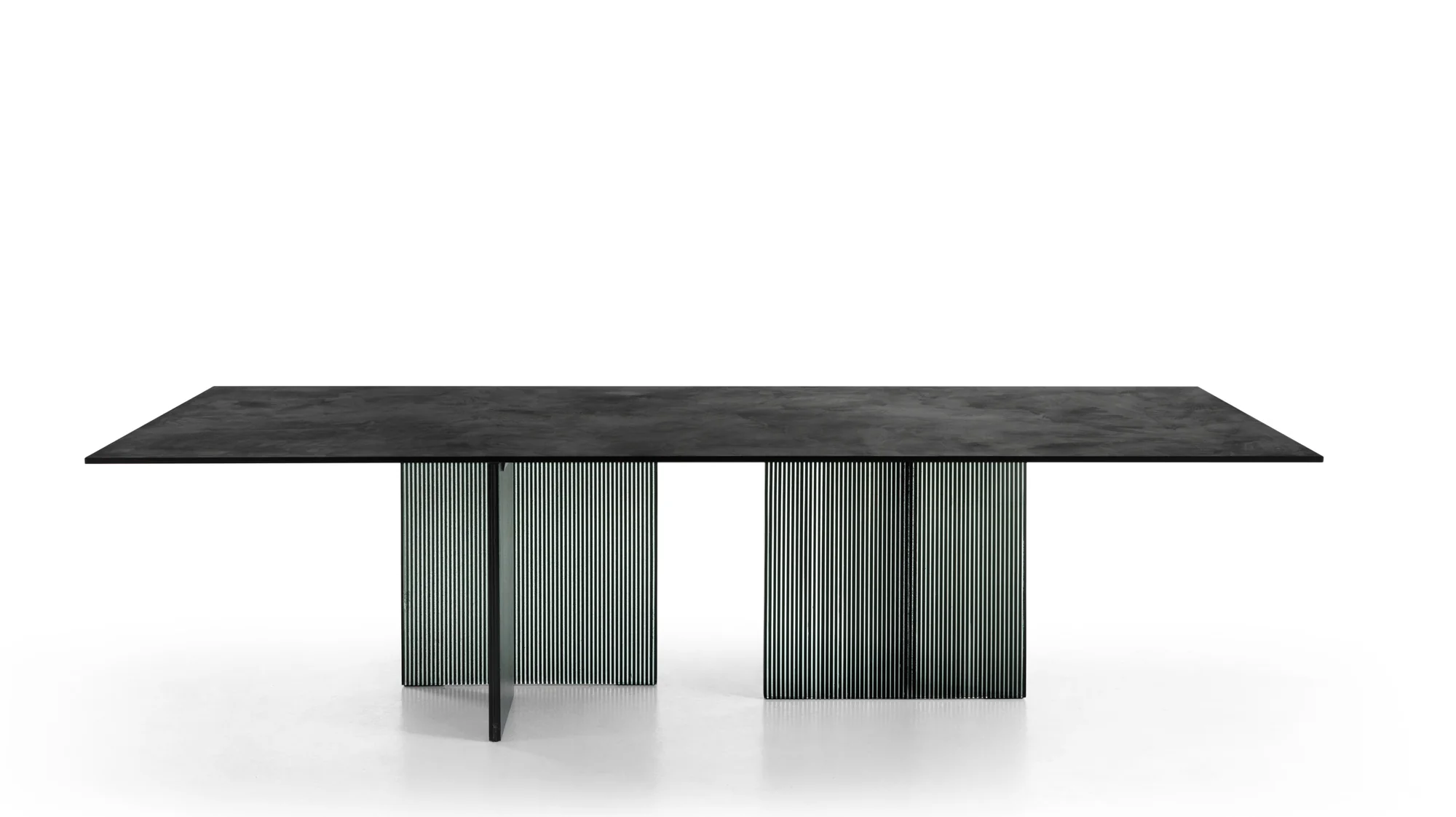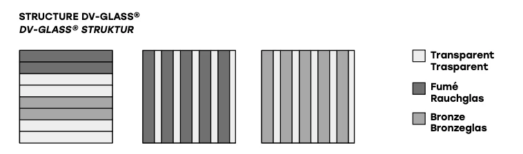 - Platte aus Glas „Total Schwarz mit Ecomalta gespachtelt - Gestell DV Glas rauch- & transparente vertikale Streifen