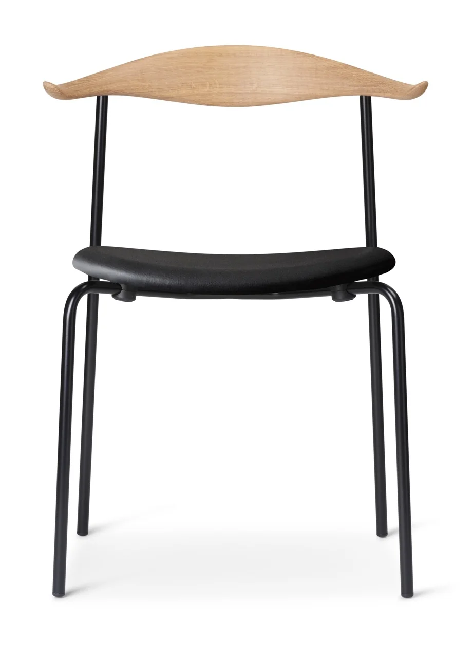 Carl Hansen CH88T Stuhl Der Stuhl CH88T von Hans J. Wegner verbindet minimalistisches Design mit hoher Funktionalität und zeitlosem Stil. Die klare Linienführung des schlanken Stahlgestells wird ergänzt durch eine ovale Sitzfläche und eine elegant geschwungene Rückenlehne aus Holz, deren leicht gebogene Enden eine natürliche Ablage für die Arme bieten. Wegner verbindet hier meisterhaft organische Formen und industrielle Materialien zu einem harmonischen und vielseitigen Möbel.Materialien: Gestell aus Stahl, Sitzfläche und Rückenlehne aus FSC™-zertifiziertem Eichen- oder BuchenholzMontage: Der Stuhl wird vollständig montiert geliefert und ist sofort einsatzbereitZertifikate: Erfüllt die EN16139:2013-Anforderungen für Stabilität und SicherheitStapelbar: bis zu 4 StückDesigner: Hans J. Wegner Gewicht: 4,4 kgMaße:H 76,5 x B 57 x T 44,5 cm